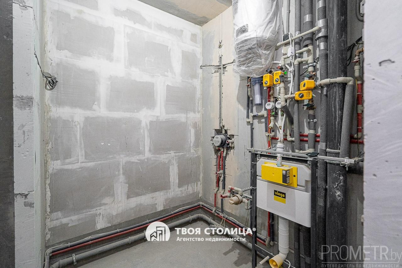 - Для удобства в квартире организованы два санузла, постирочная и просторная гардеробная, продумана и разведена система электрики. Установлены бойлер, современные фильтры очистки воды. Квартира полностью готова к чистовой отделке.