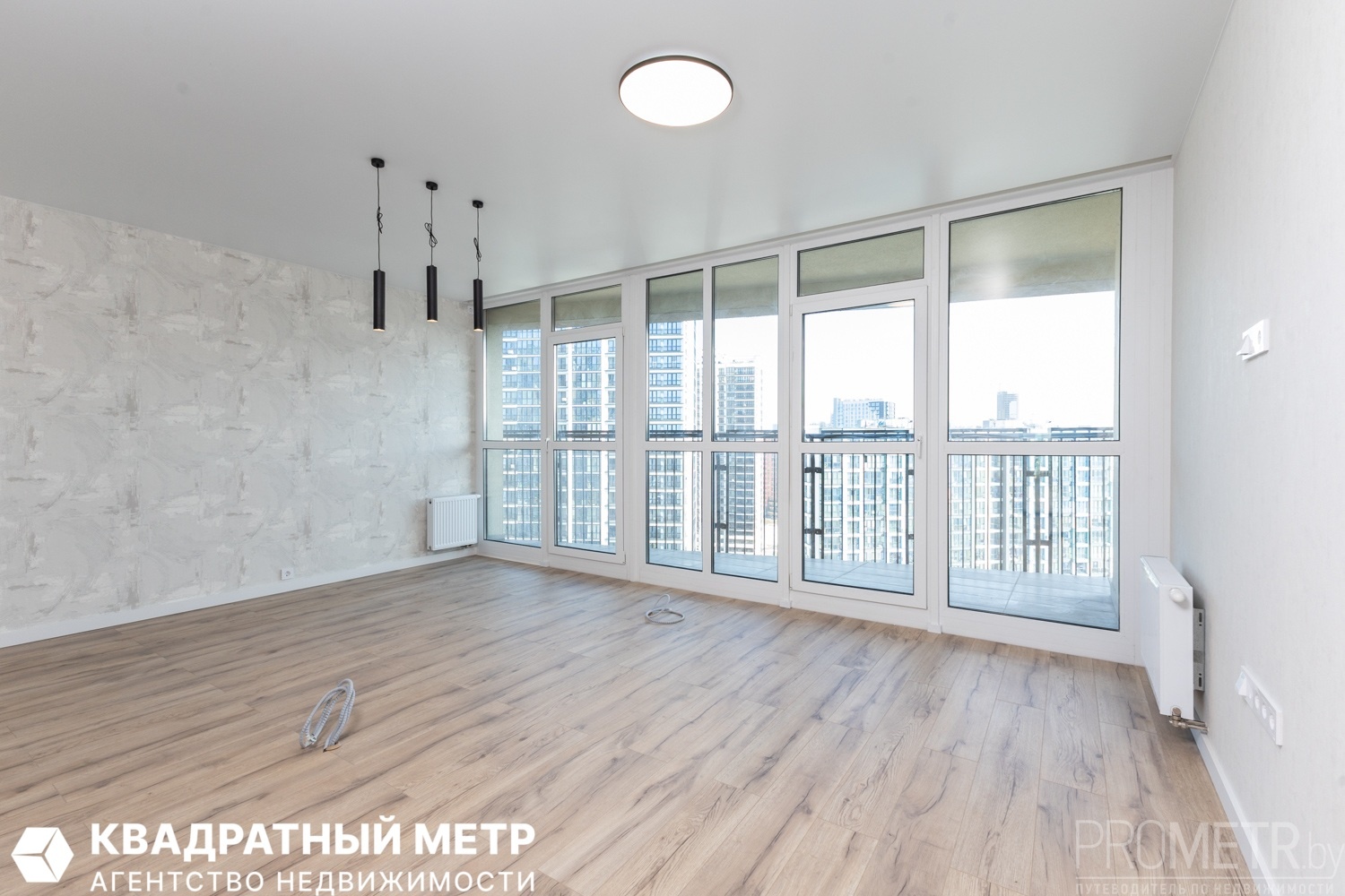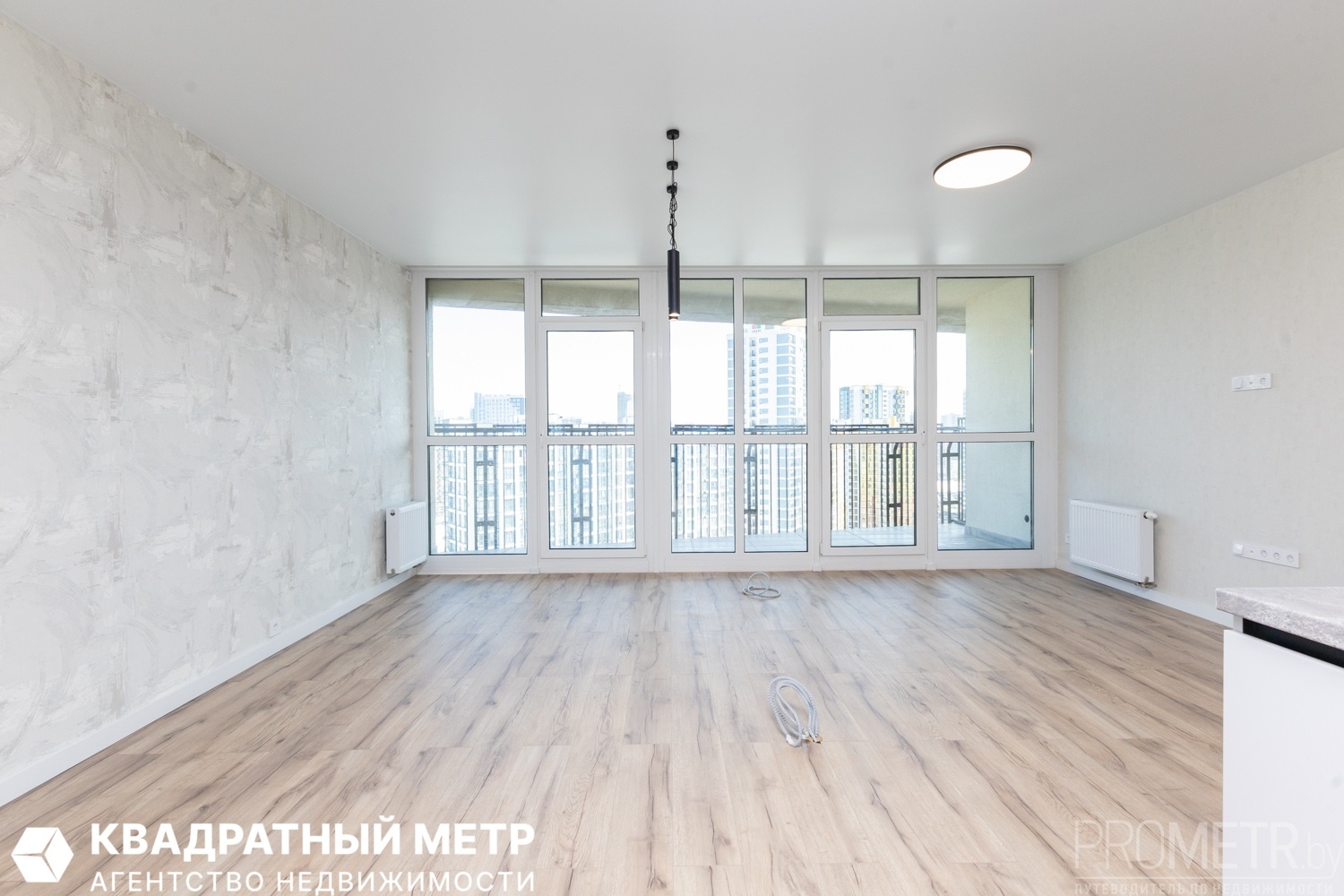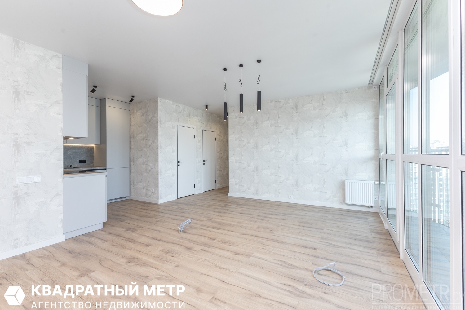Две изолированные спальни и большая гостиная с кухонным оборудованием с панорамным остеклением на всю стену. Раздельный сан. узел. Две просторные лоджии.<br />