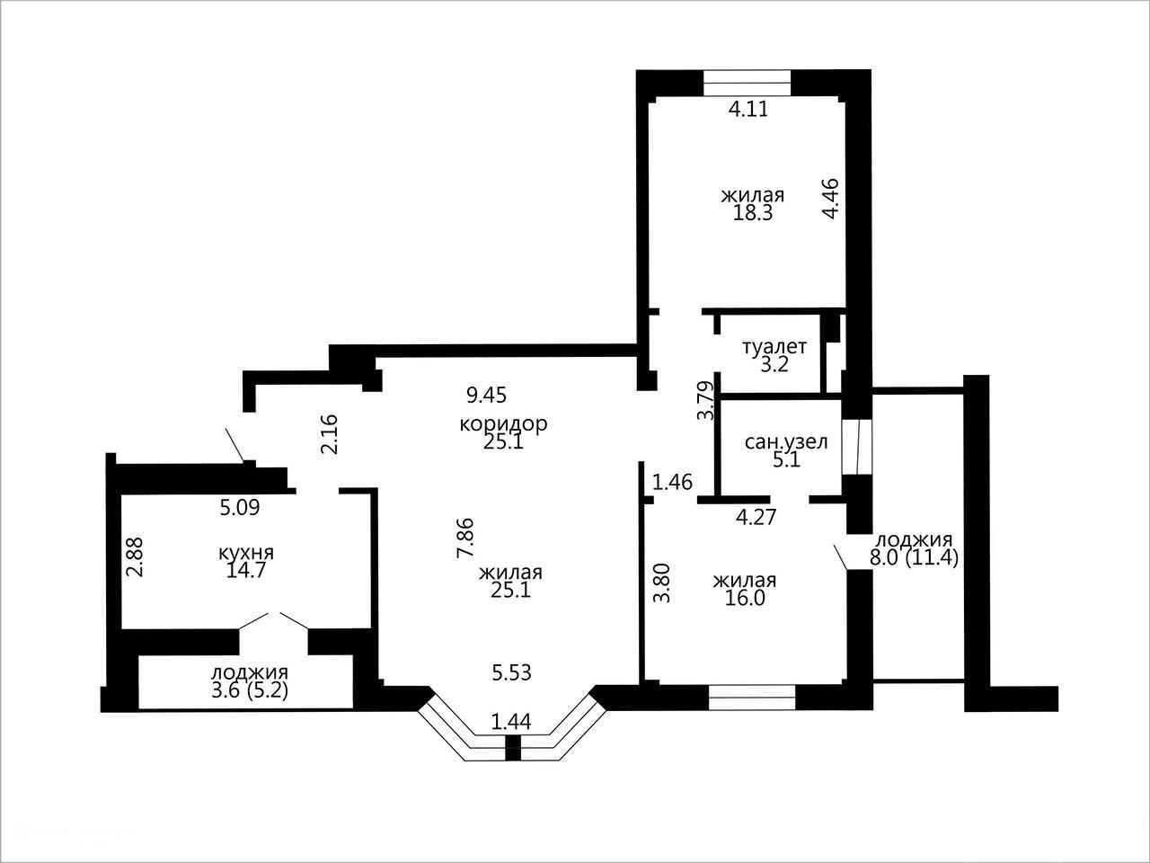 Просторная трёхкомнатная квартира в ЖК "Изумрудный". Дом каркасно - блочный 2006 года постройки. Общая площадь квартиры по СНБ – 119.1 кв. м.
