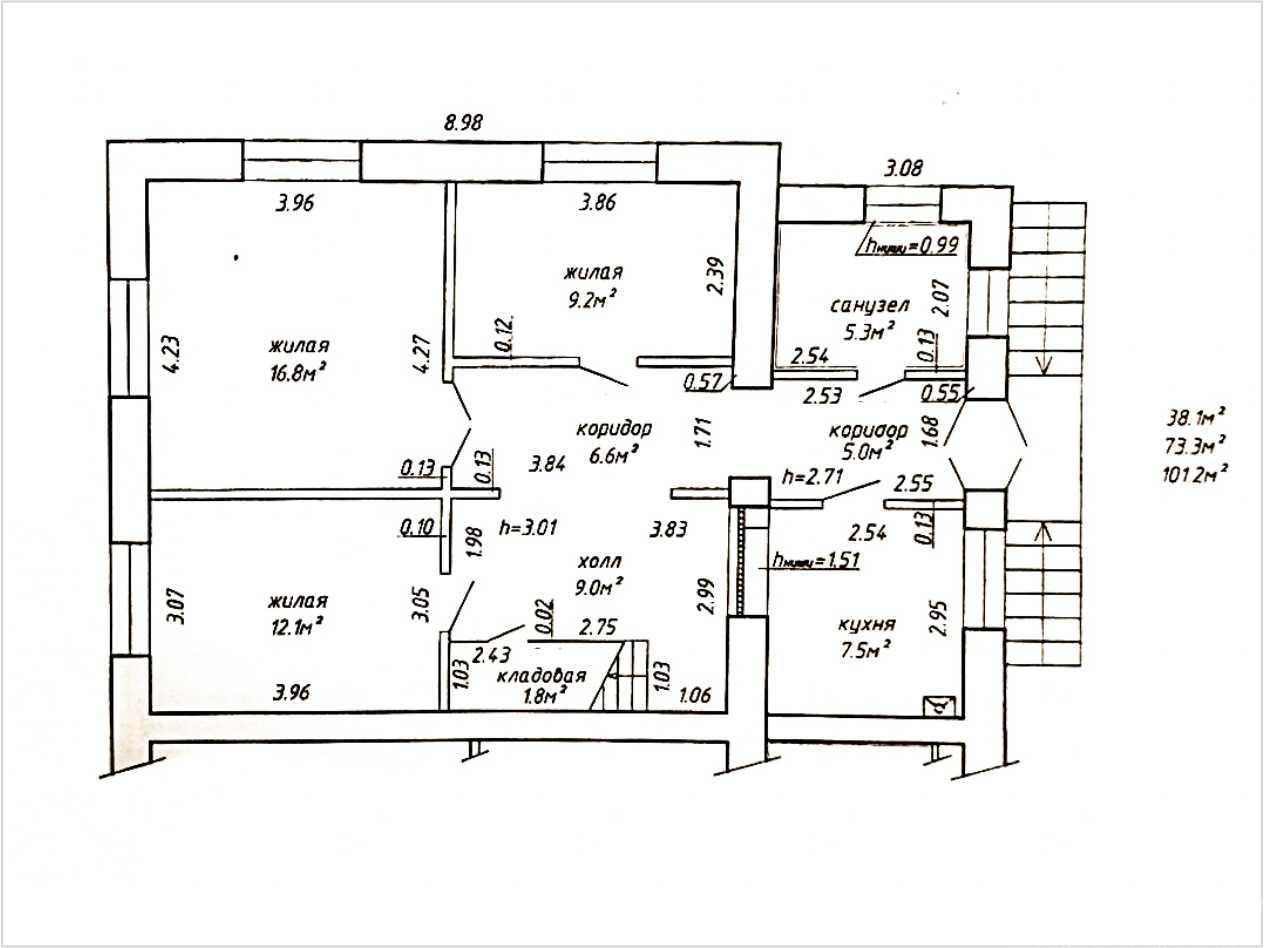 Квартира находится на первом этаже двухэтажного кирпичного дома 1975 года постройки, что гарантирует надежность и хорошую шумоизоляцию. Общая площадь составляет внушительные 101.2 кв.м, из которых 38.1 кв.м приходится на жилую зону, а кухня имеет площадь 7.5 кв.м. Вы оцените отличное состояние ремонта: квартира полностью готова к заселению и не требует дополнительных вложений. Установлена металлическая дверь и современные стеклопакеты, что обеспечивает тепло и тишину. Санузел совмещенный.