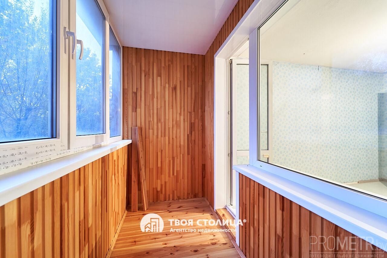 Рациональная планировка: окна выходят на разные стороны, что делает квартиру визуально ещё более светлой и просторной. Требует ремонта. Лоджия обшита вагонкой, установлены стеклопакеты ПВХ. Тамбур на две квартиры.