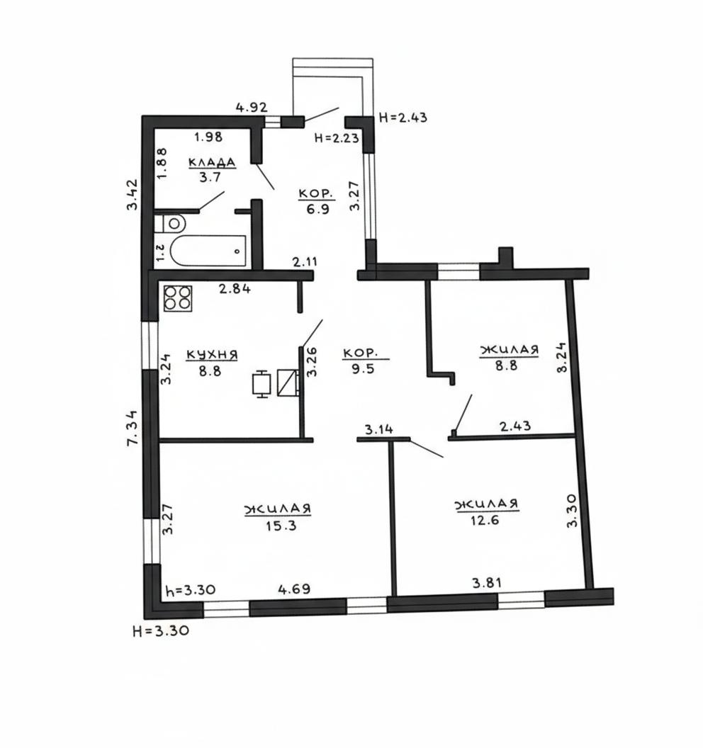 Продаётся 3-х комнатная квартира в 3-х квартирном доме в центральной части города.