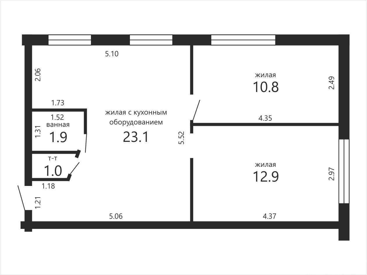 - жилая – 37,9м2;
