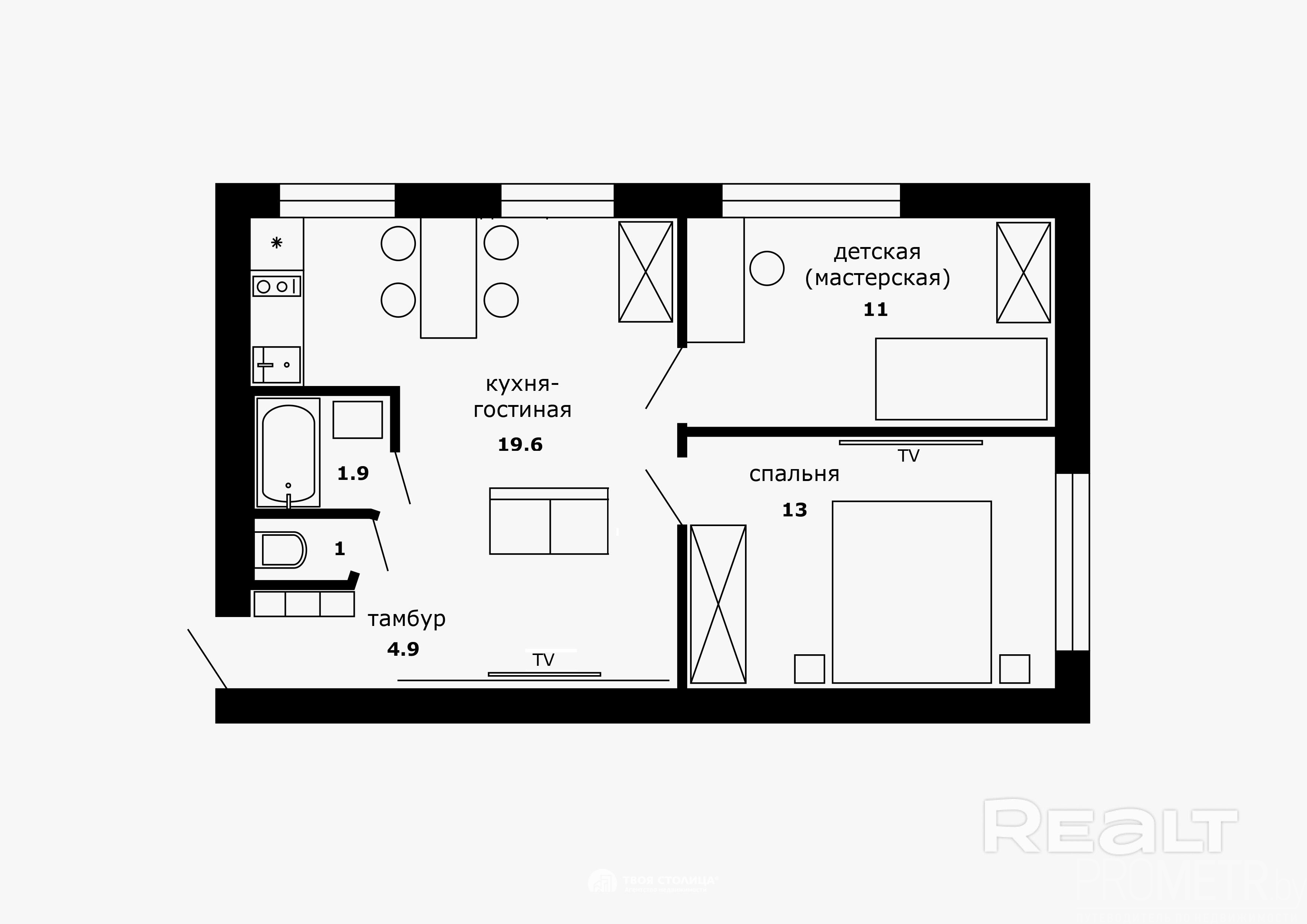 Ваша будущая квартира отличается современной и продуманной планировкой – евро-формат - кухня-гостиная и две изолированные комнаты по 11 и 13 м2 соответственно. Планировка узаконена и соответствует тех. паспорту квартиры.