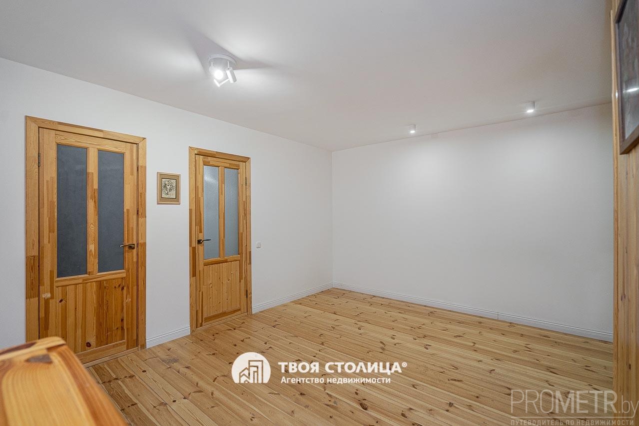 В кухне-гостиной уложен новый пол из натурального дерева. При устройстве пола были установлены новые деревянные лаги, подполье гидроизолировано и утеплено эковатой в соответствии с современными строительными технологиями и нормами. В жилых комнатах уложен ламинат.