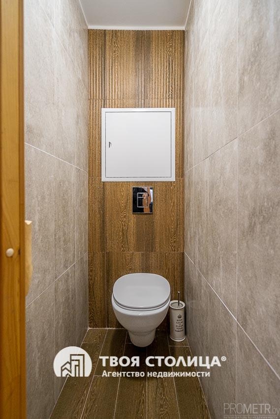 Санузел раздельный, пол и стены в них выложены современной керамической плиткой.