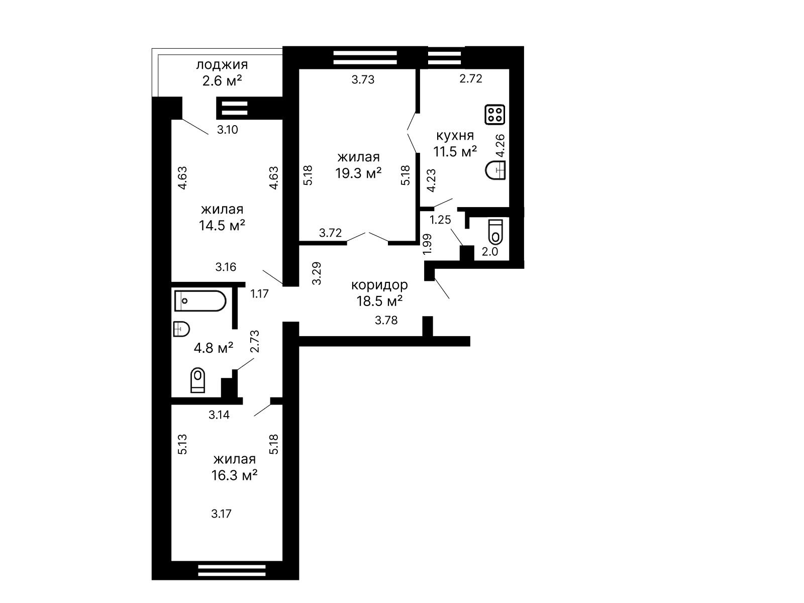 Общая площадь квартиры составляет 86.9 кв.м ( Площадь по СНБ 89.5) , жилая - 50.1 кв.м, а уютная кухня - 11.5 кв.м. Высота потолков 2.74 м создает ощущение простора. Квартира находится на 3 этаже из 10. Выполнен нормальный ремонт, что позволяет сразу заехать и жить. В квартире установлены металлическая дверь, стеклопакеты, счетчики воды и домофон. Санузел раздельный, есть лоджия, что добавляет функциональности.