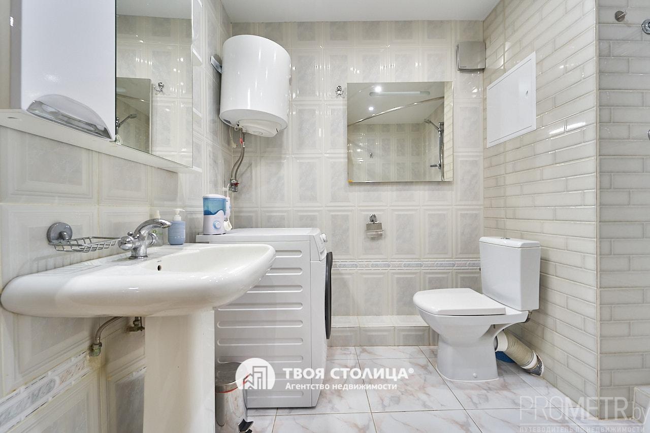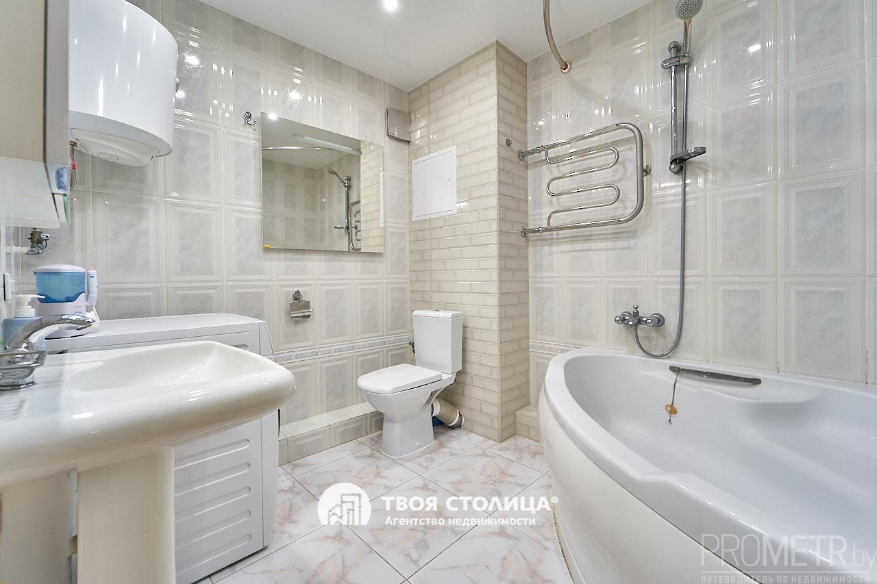 Санузел – совмещённый, большой и светлый, отделан современной и качественной плиткой, установлена большая угловая ванна, раковина, полноразмерная стиральная машина, бойлер (на случай отключения горячей воды).