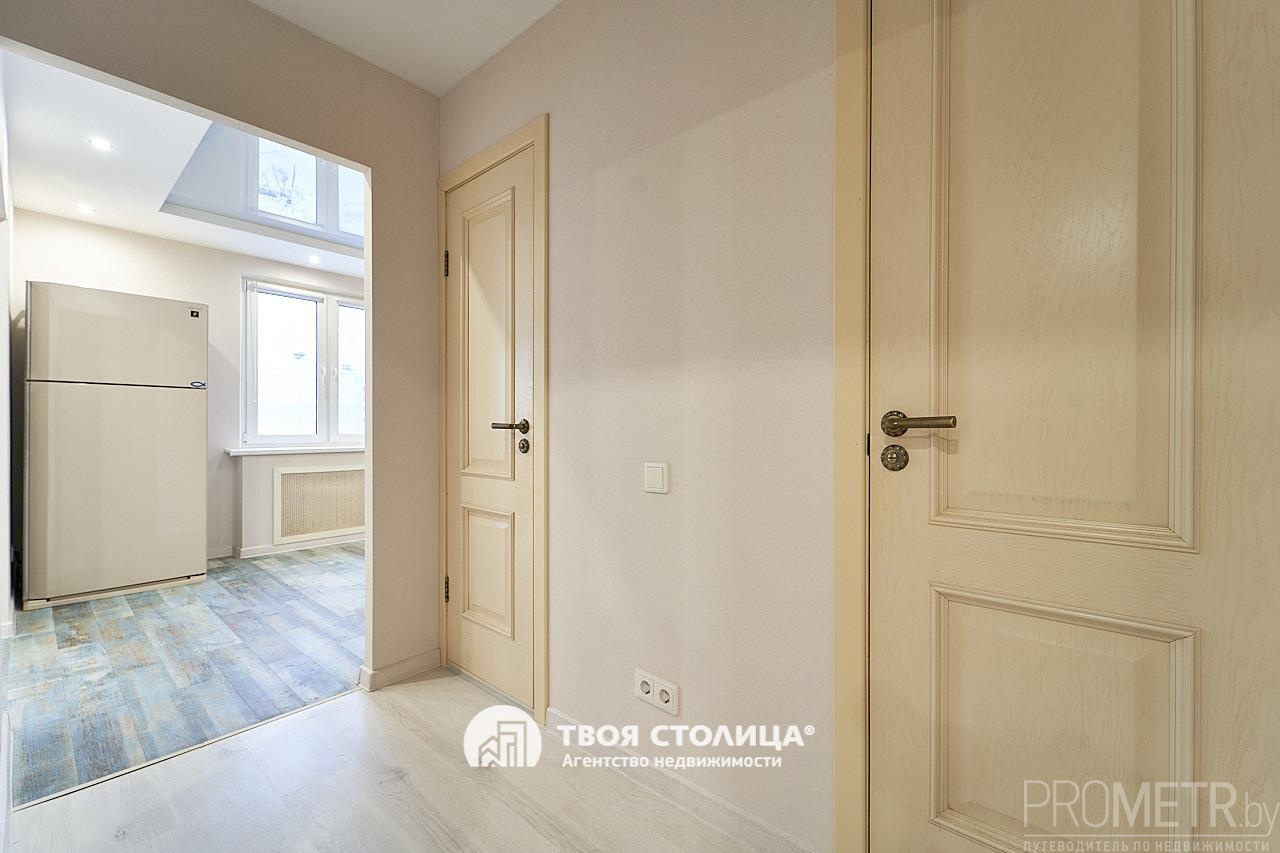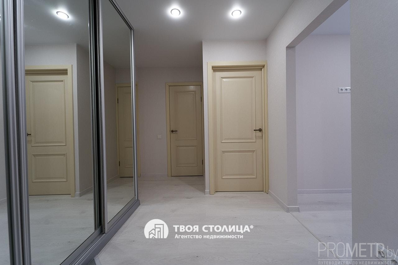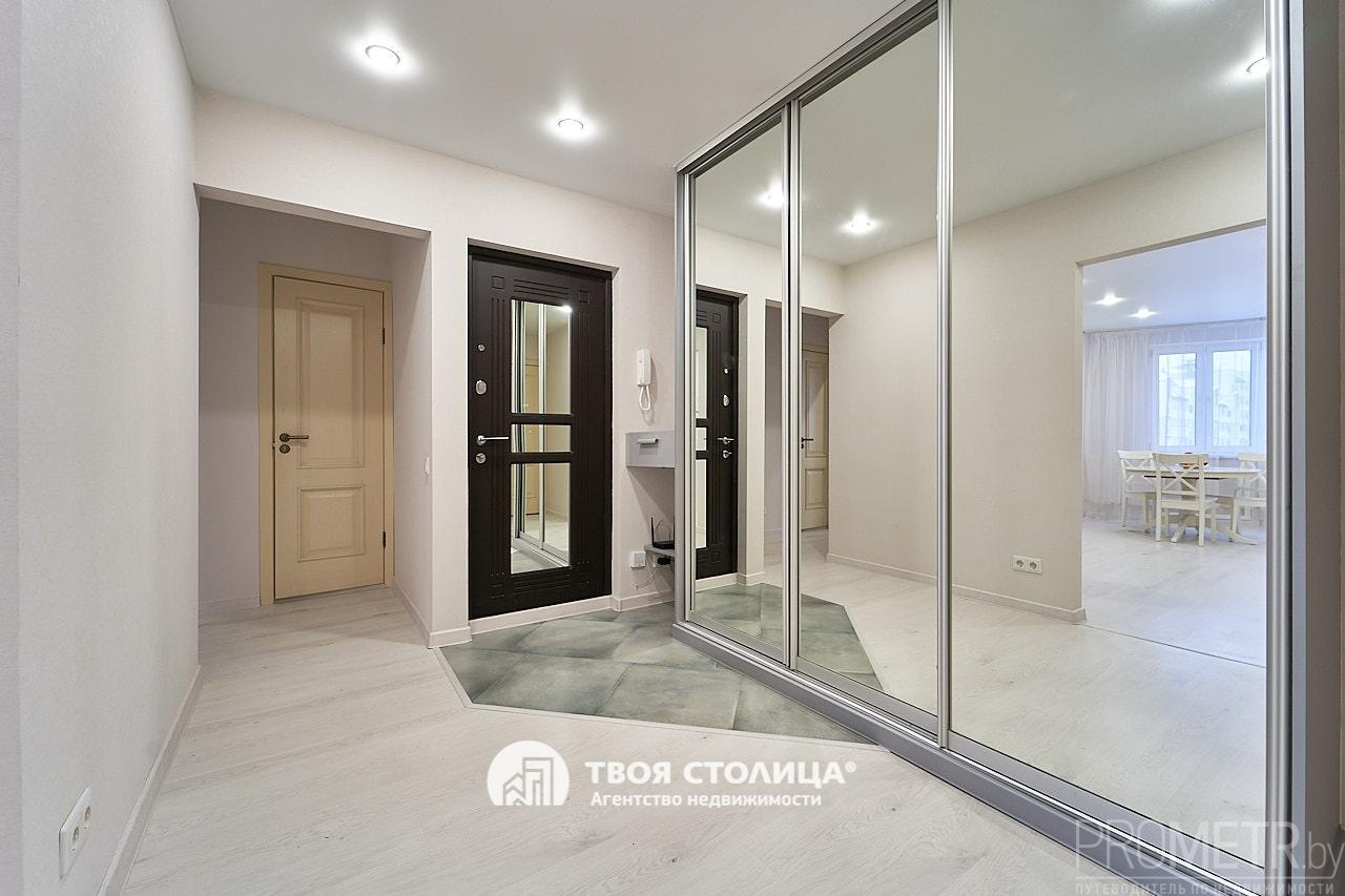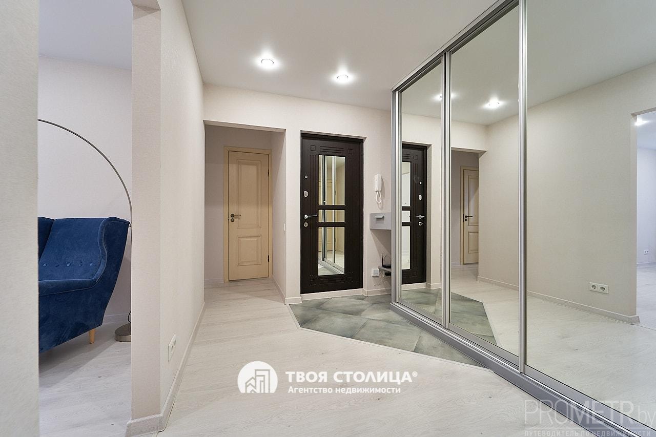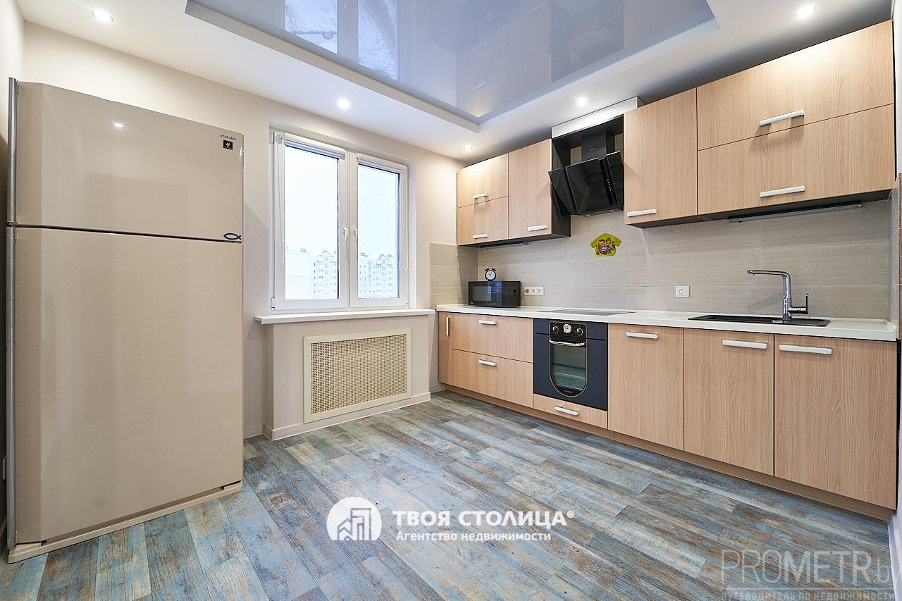 Функциональная кухня оснащена всей необходимой бытовой техникой: варочная панель, духовой шкаф, вытяжка, холодильник. В прихожей — вместительный шкаф-купе, а для удобного хранения вещей предусмотрена отдельная гардеробная комната. Санузел выполнен в керамической плитке, установлена качественная сантехника и стиральная машина. Надежная металлическая входная дверь, чистый и аккуратный подъезд.