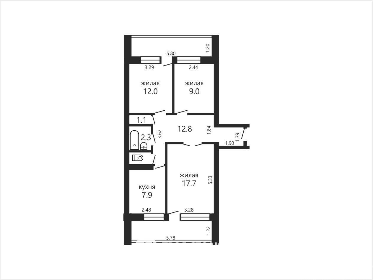 Квартира общей площадью 63.3 кв.м (70.5 по СНБ) расположена на третьем этаже из 9ти-этажного кирпичного дома 1976 года постройки. Капитальный ремонт дома проведен в 2024 году, лифты заменены. Окна квартиры выходят на 2 стороны, с обеих сторон - 2 большие застекленные лоджии. Просторная прихожая, раздельный санузел, кладовая.