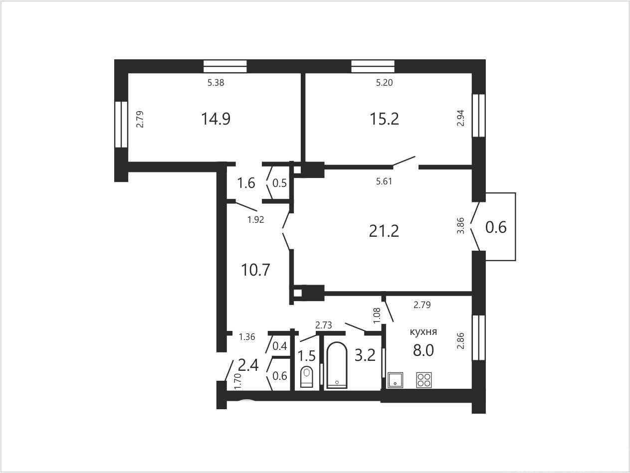 Рациональное планировочное решение: окна квартиры выходят на три стороны дома. Такая планировка обеспечивает хорошее естественное освещение в течение всего дня, и даёт возможность наслаждаться разнообразными видами из окон, что повышает комфорт проживания.