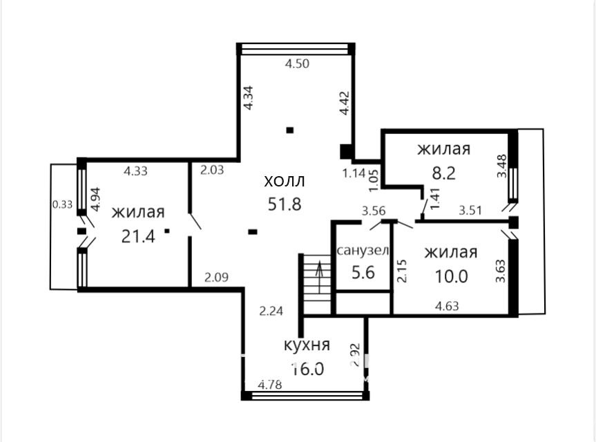 Общая площадь: 113. Жилая площадь: 39.6. Площадь кухни: 16