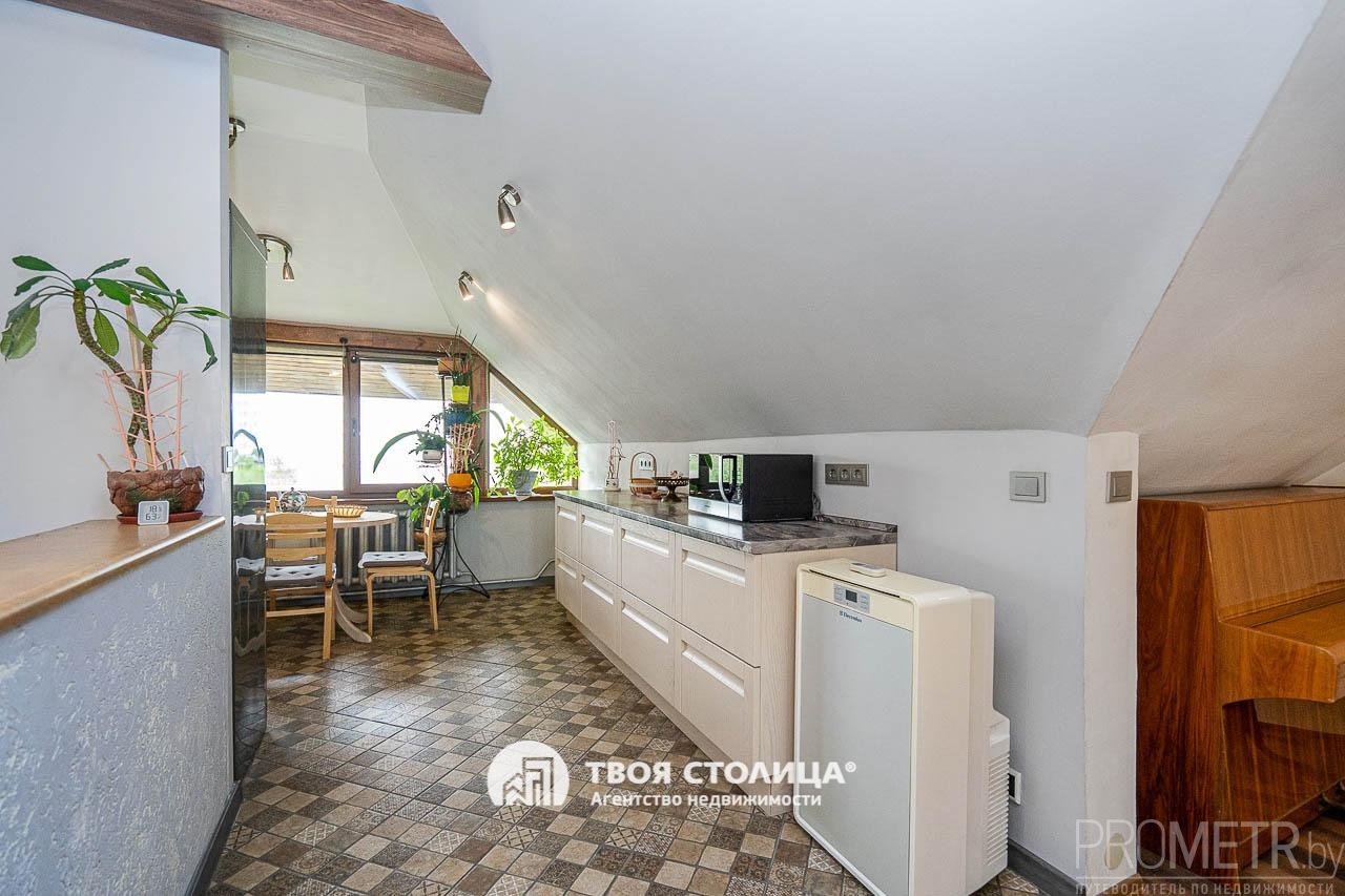 Квартира занимает весь 4-ый мансардный этаж. Здесь максимально продуманная и практичная планировка: огромный холл с настоящим камином, три изолированные комнаты, просторная кухня, раздельный санузел с большой ванной комнатой и 2 застекленных и утепленных балкона. Окна выходя на все стороны света и ни один вид не оставит Вас равнодушным.