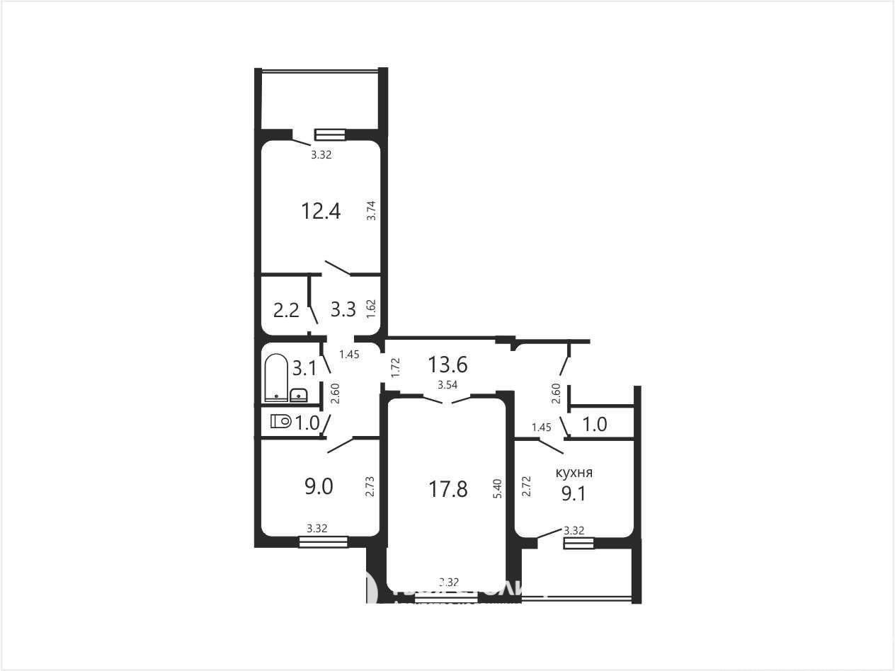 Общая площадь — 72,4