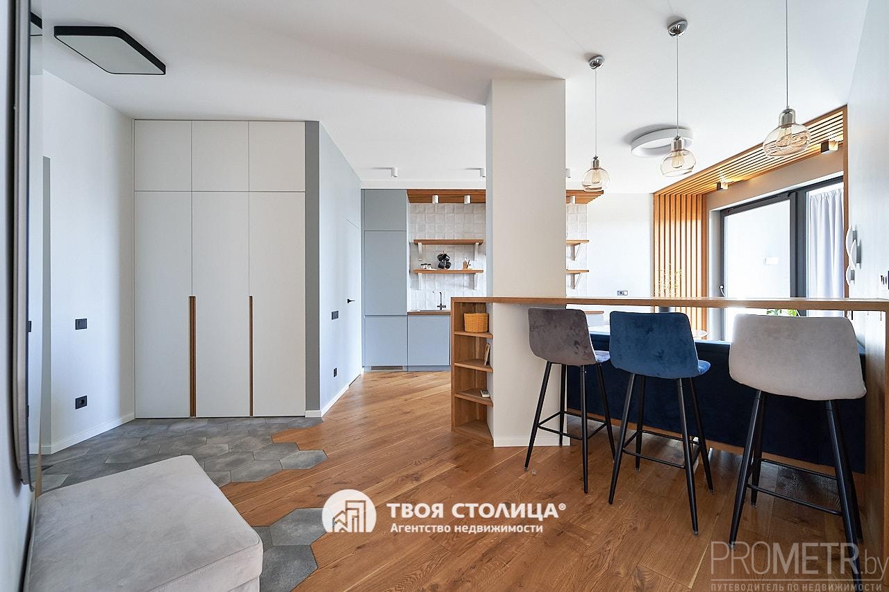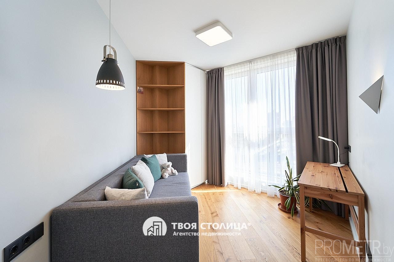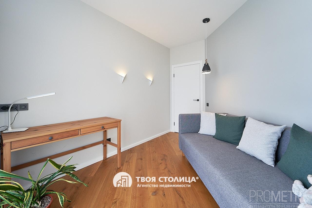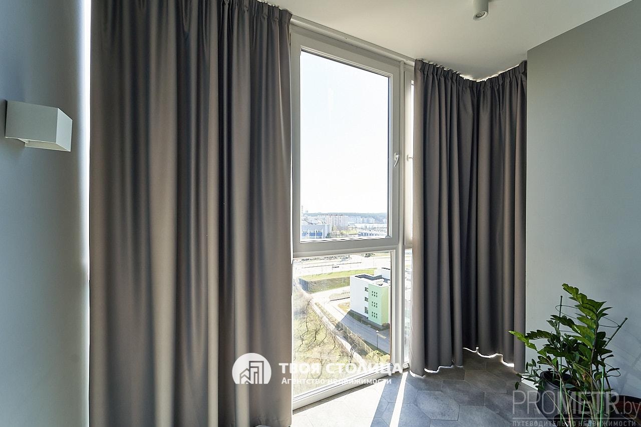 Свет: три окна на южную сторону, вид на библиотеку и Белтелерадиокомпанию. В интерьере — сценарии освещения от функционального до мягкого отражённого.