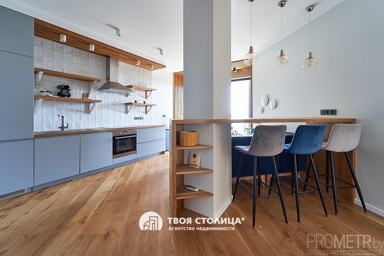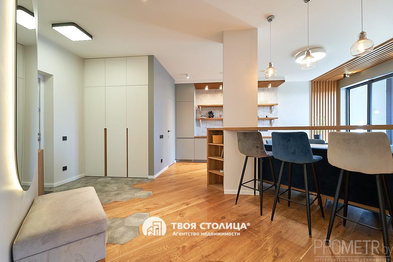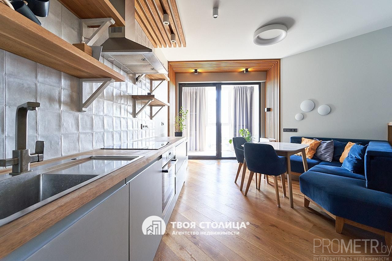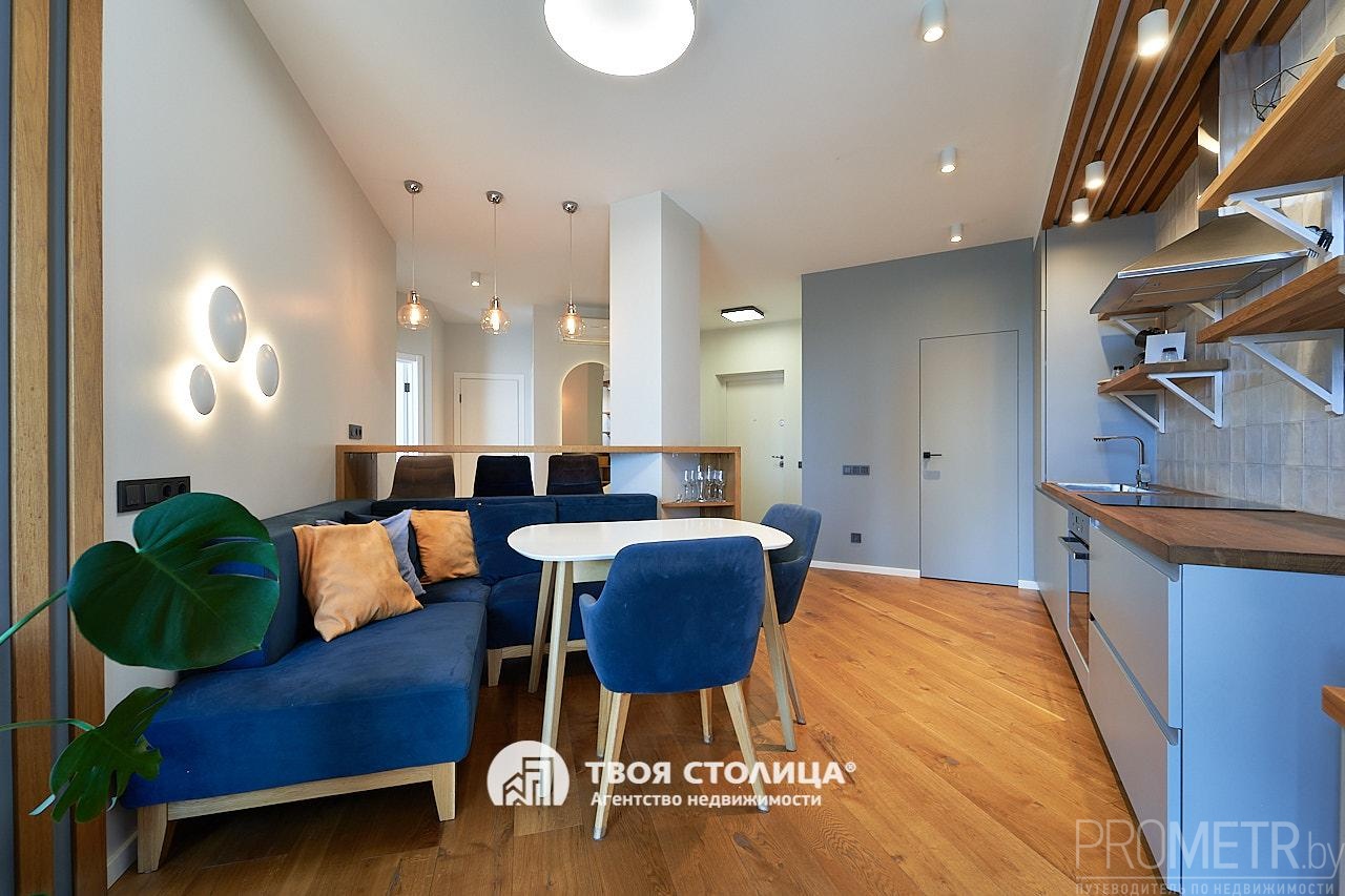 Свет: три окна на южную сторону, вид на библиотеку и Белтелерадиокомпанию. В интерьере — сценарии освещения от функционального до мягкого отражённого.
