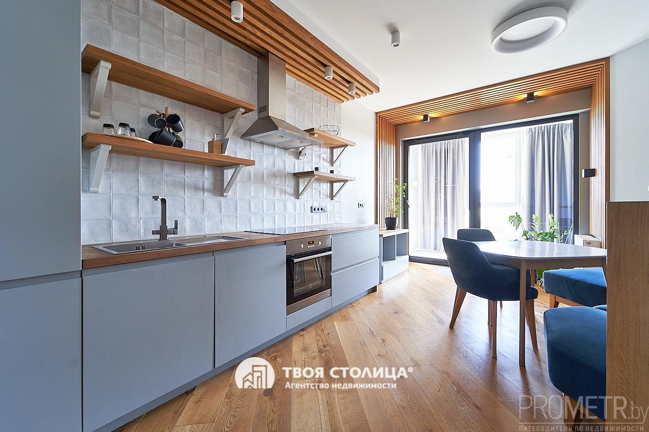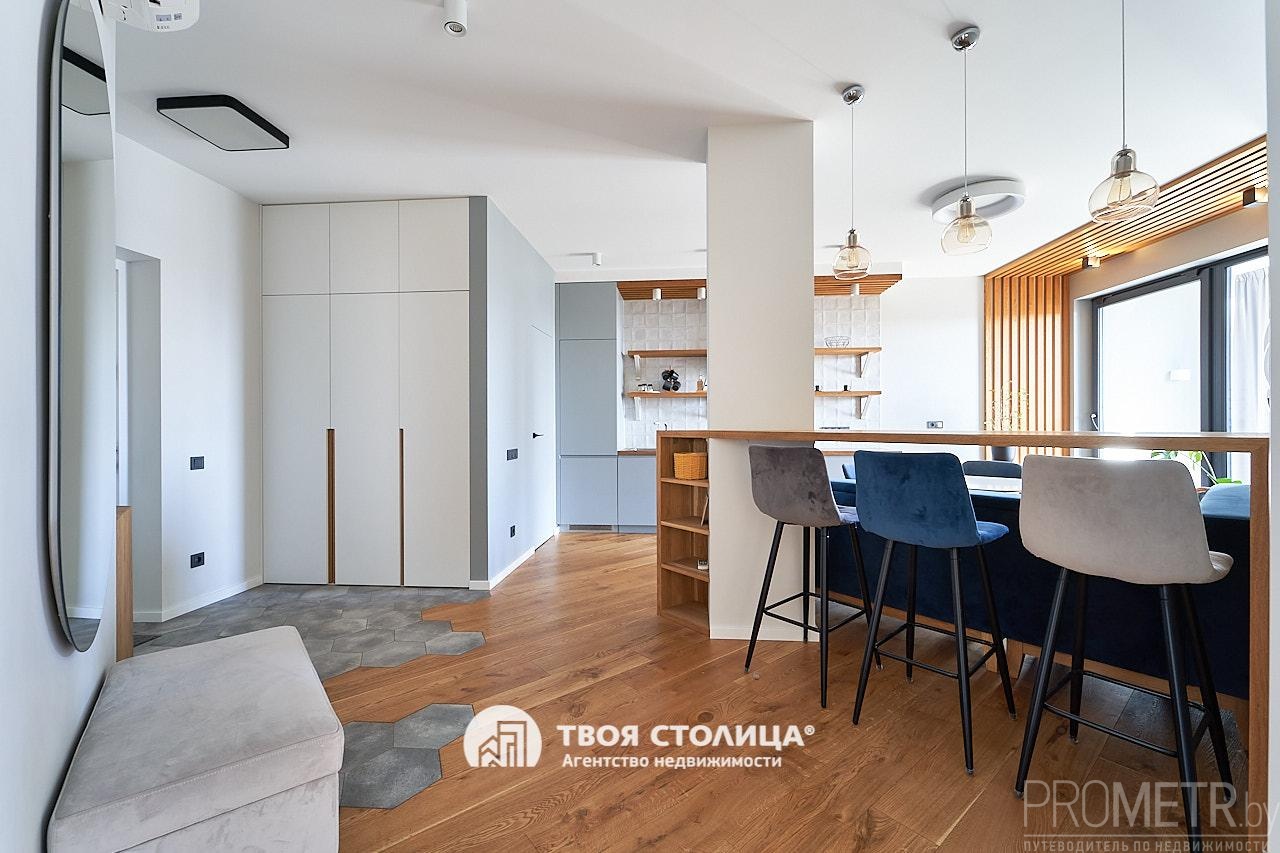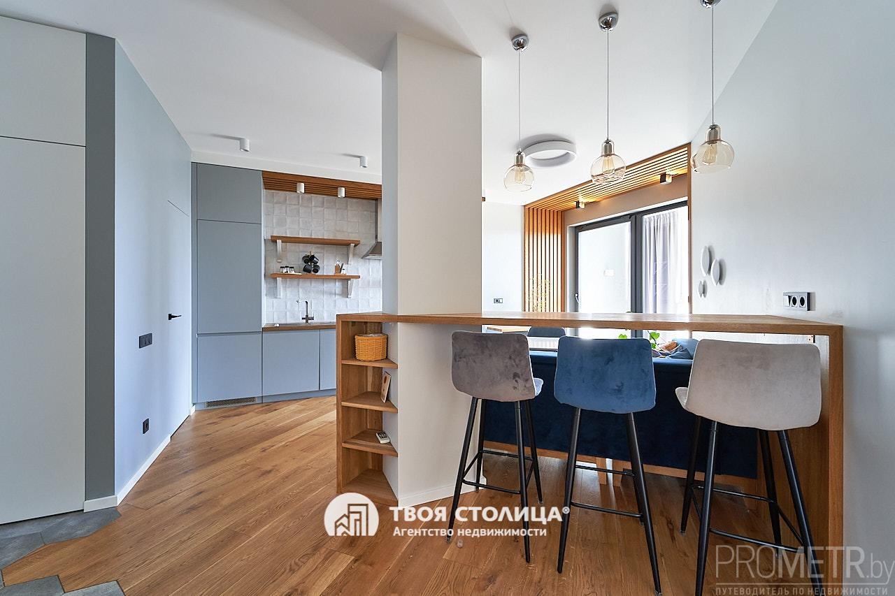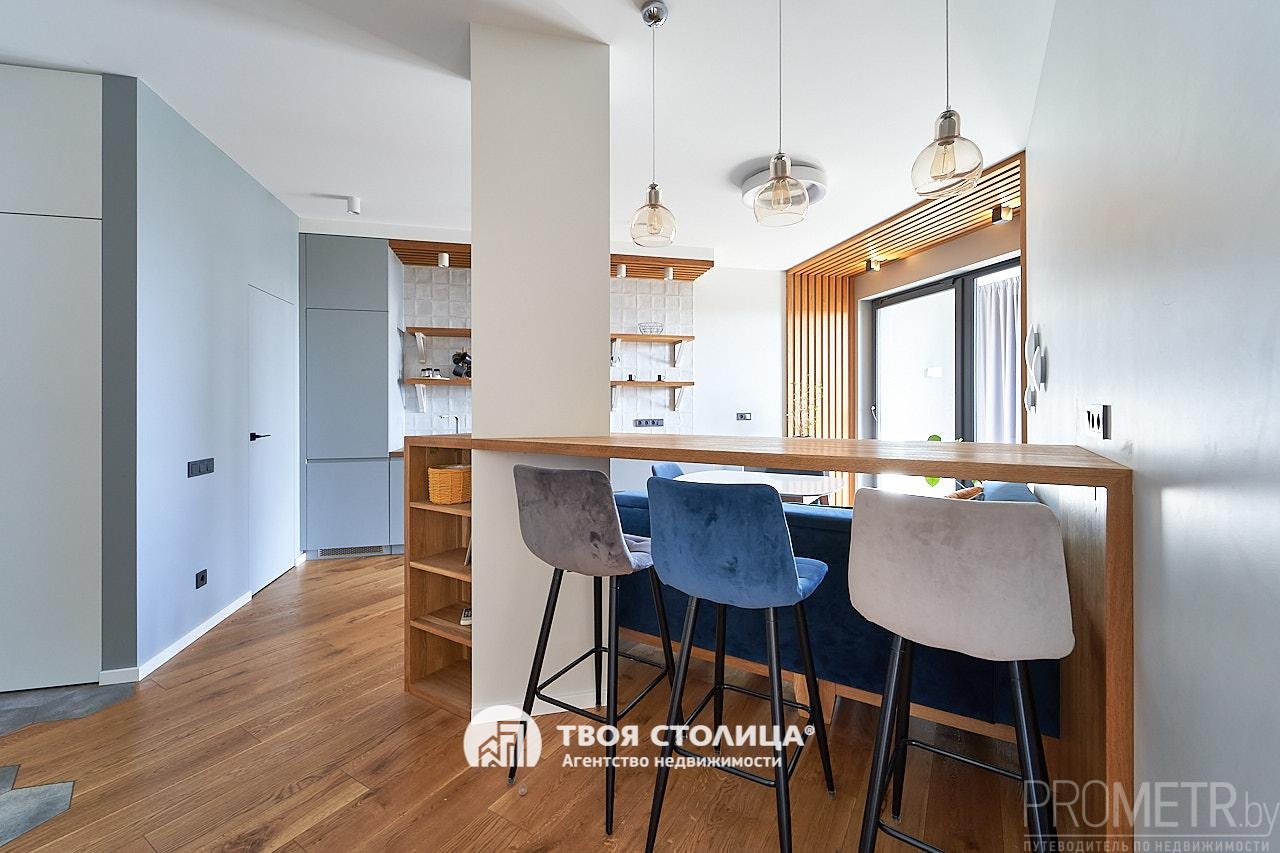 Свет: три окна на южную сторону, вид на библиотеку и Белтелерадиокомпанию. В интерьере — сценарии освещения от функционального до мягкого отражённого.