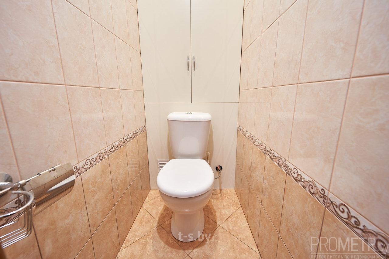 Санузел раздельный, облицован плиткой современного образца.