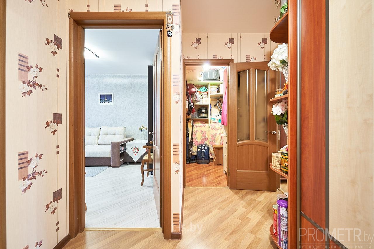 Прихожая обустроена вместительным шкафом-купе. Входная дверь металлическая.