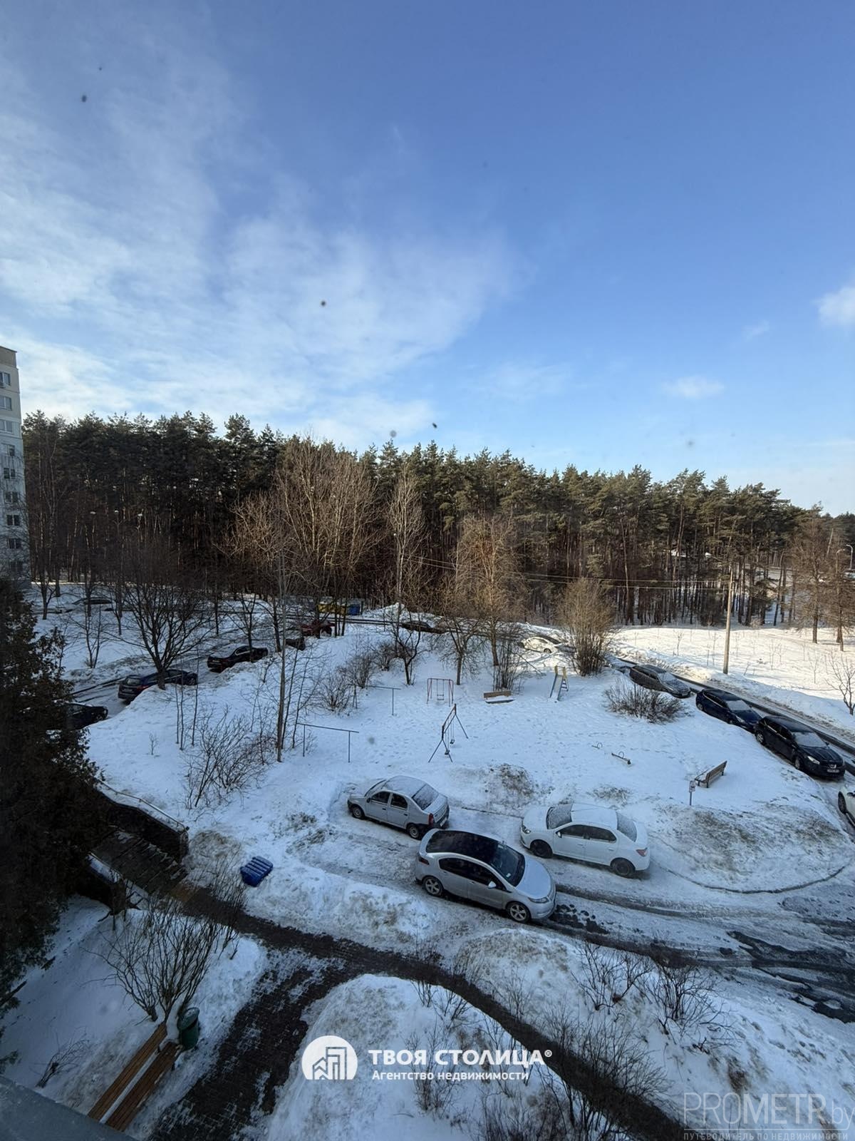 Квартира расположена на комфортном 4 этаже. Отличный вид из окон всех комнат. Окна комнат и кухни выходят на лесной массив, третья комната выходит в сторону парка.