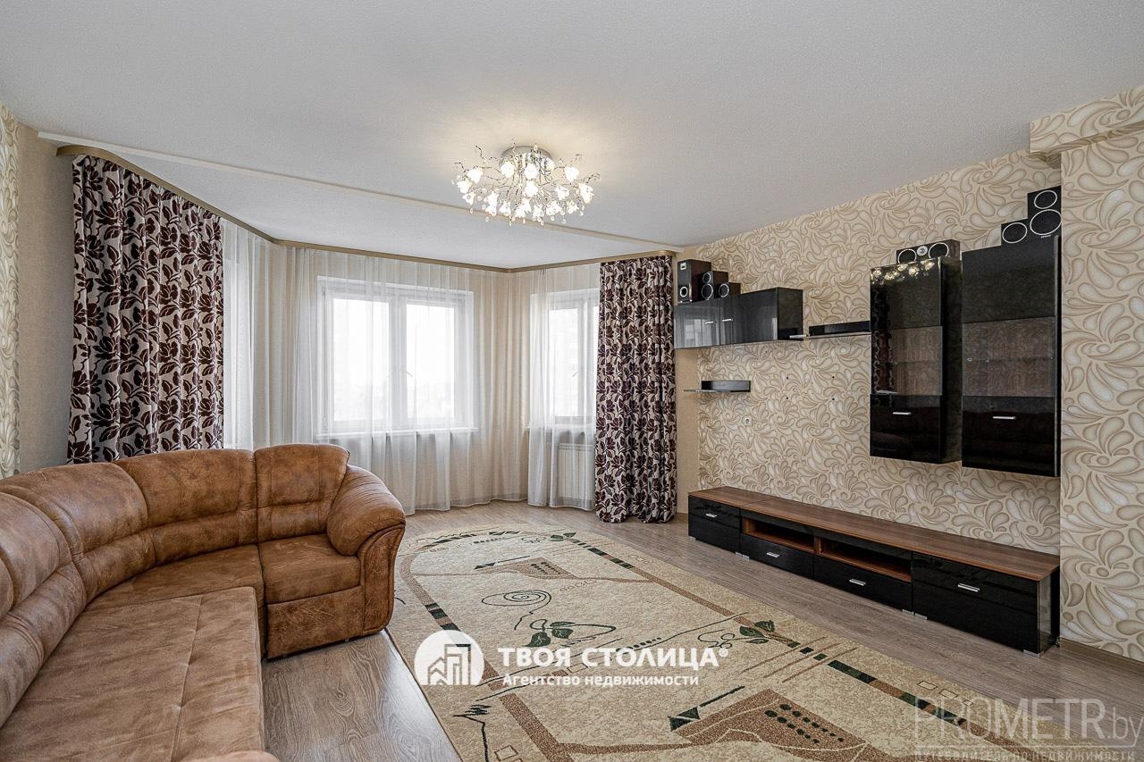 Комфортный 5-й этаж современного панельного дома (2013 г.п., 10 этажей). Общая площадь 92,6 м², жилая 50,2 м², кухня 12 м². Потолки 2,76 м.