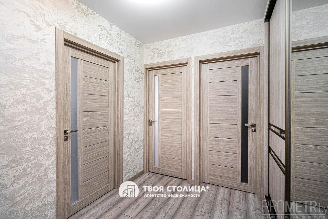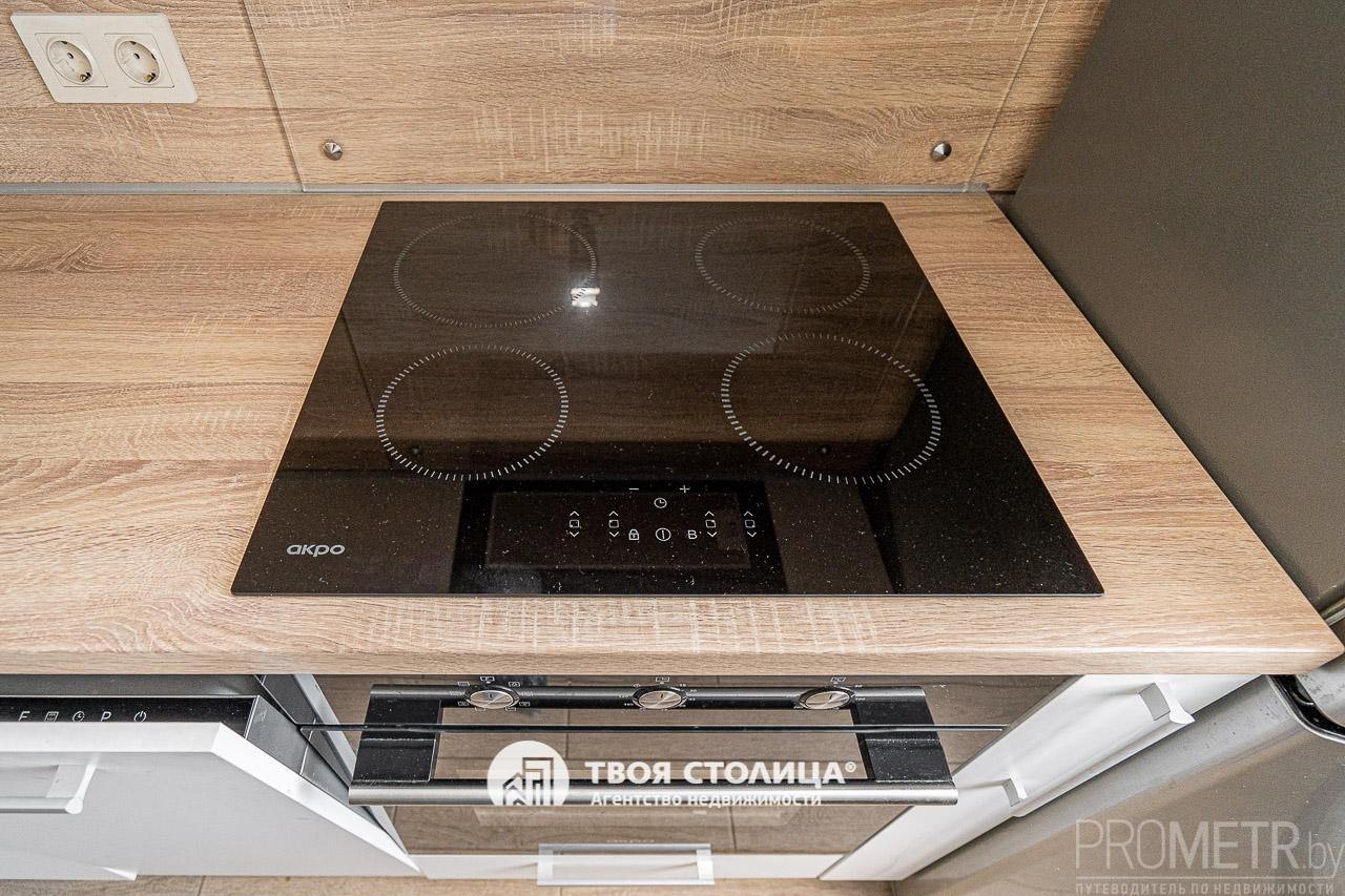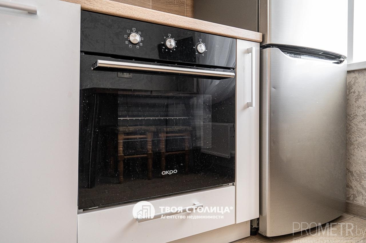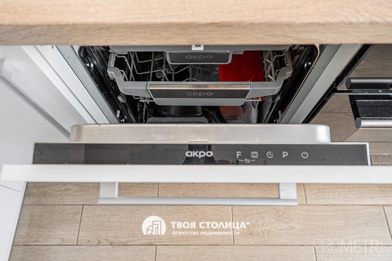 В оконных проёмах установлены стеклопакеты с профилем из ПВХ, в том числе на лоджии. Натяжные потолки с точечными и подвесными осветительными приборами. Напольное покрытие - ламинат, плитка. Санузлы облицованы современной кафельной плиткой, установлена необходимая сантехническая посуда и мебель. Подключены приборы учёта воды. Встроенная кухонная мебель с техникой импортного производства: варочная поверхность, духовой шкаф, вытяжка, посудомоечная машина, холодильник. Предусмотрено множество мест для хранения, в том числе вместительный шкаф-купе. Входная дверь металлическая . Подключен домофон, оптоволоконная связь.