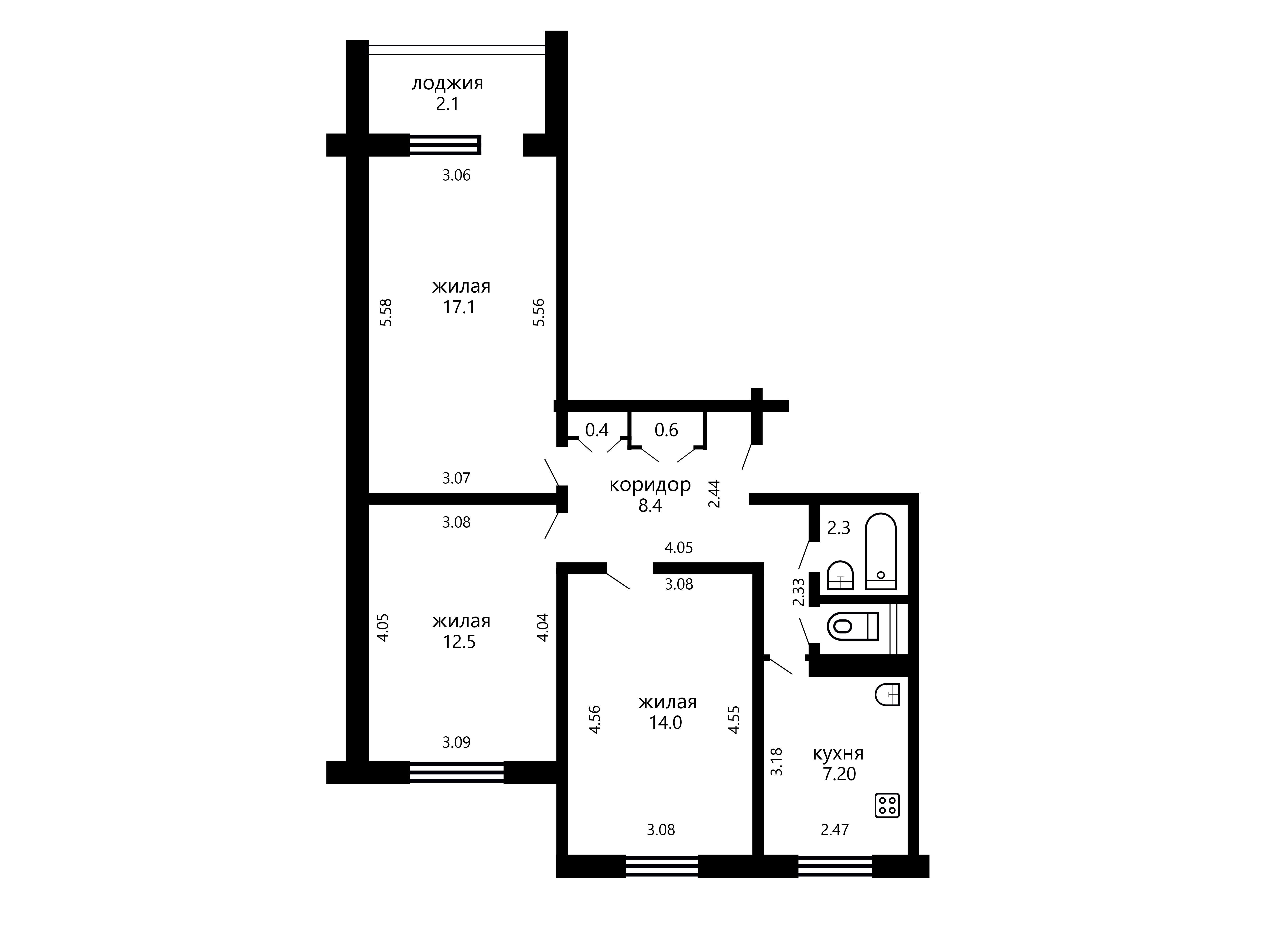 Рациональная планировка: все комнаты изолированные, санузел раздельный, большая прихожая, застеклённая лоджия, окна выходят на разные стороны дома. Это делает квартиру визуально ещё более светлой и просторной.