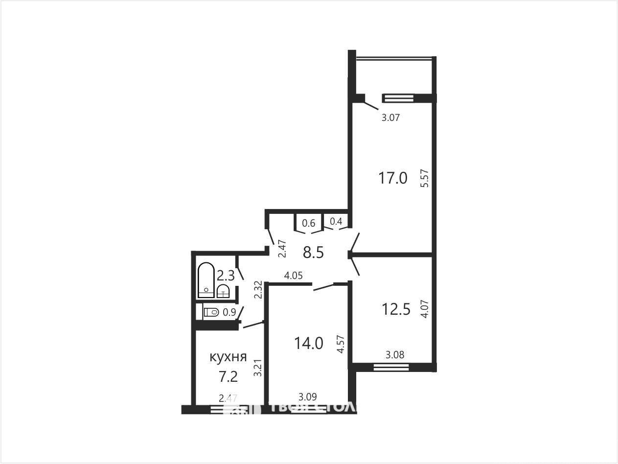 Расположена на 6 этаже девятиэтажного дома. Квартира не угловая. Три изолированные комнаты, раздельный санузел. Окна квартиры выходят на противоположные стороны дома (северо-запад и юго-восток). В одной комнате установлены стеклопакеты. Напольное покрытие - линолеум. Подключены приборы учёта воды.