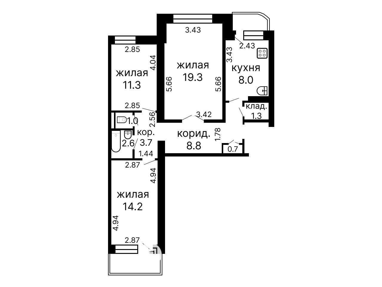 Квартира в жилом состоянии. Полы в комнатах покрыты паркетом, в коридоре и кухне уложена плитка, а потолки выровнены и побелены. Санузел также отделан плиткой, установлена необходимая сантехника, в т.ч. бойлер. Окна кухни и двух комнат 19.3 кв.м. и 11.3 кв.м. выходят в сторону метро и зеленой зоны (освещено солнцем во второй половине дня), окна комнаты 14.2 кв.м. - во двор (солнце в первой половине дня). В оконных проемах стеклопакеты ПВХ, в т.ч. на лоджии. Встроенная кухня в техникой: варочная газовая панель, духовой шкаф, вытяжка, посудомоечная машина. Межкомнатные двери МДФ. Входная металлическая дверь.