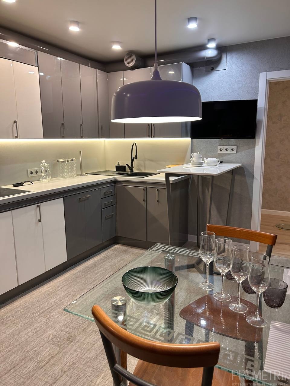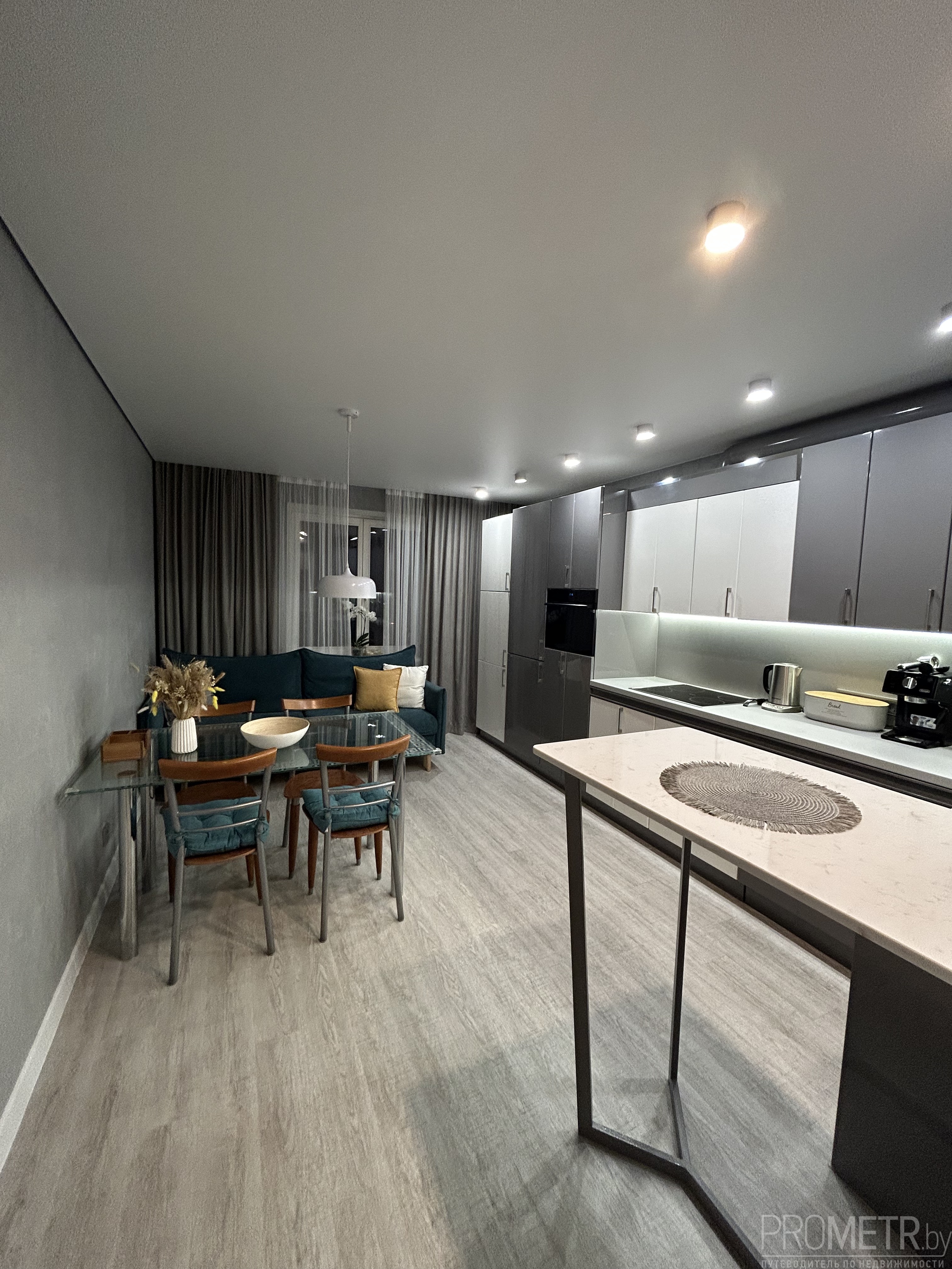 Квартира находится на одном из верхних этажей современного дома. Из окон открывается панорамный вид на Лошицкий парк. Особенно красивы рассветы и закаты.<br />