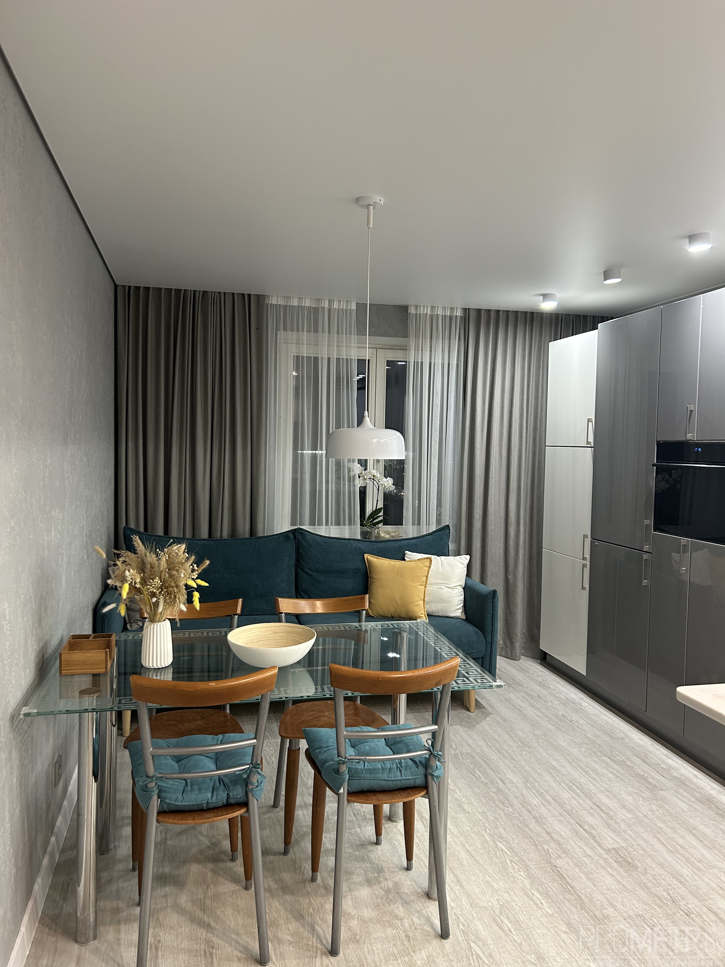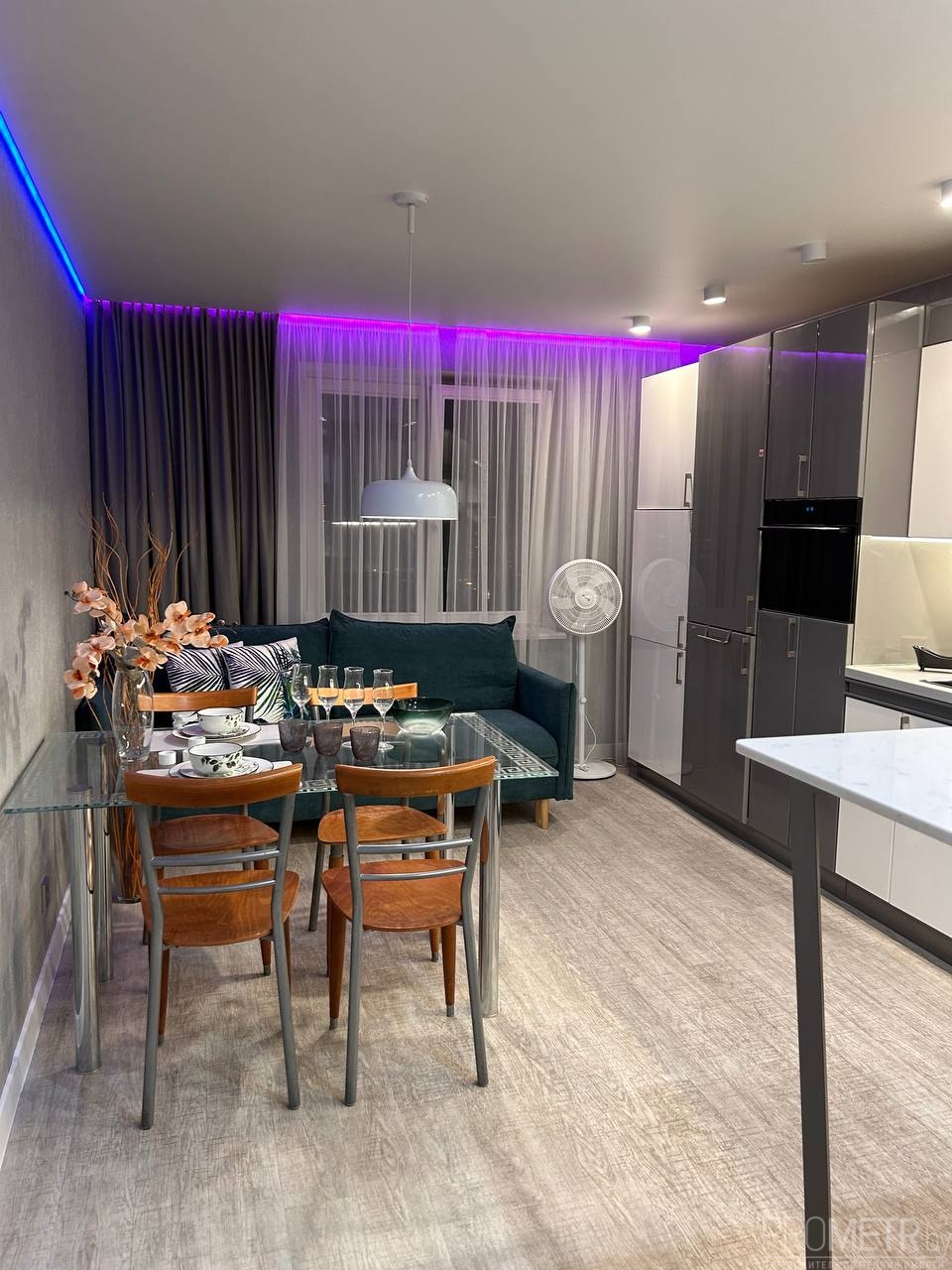 Планировка удобная и современная: отдельная спальня, гостиная и большая кухня-гостиная, где есть раскладывающийся диван. В сложенном виде это односпальное место, в разложенном — полноценное двуспальное.<br />