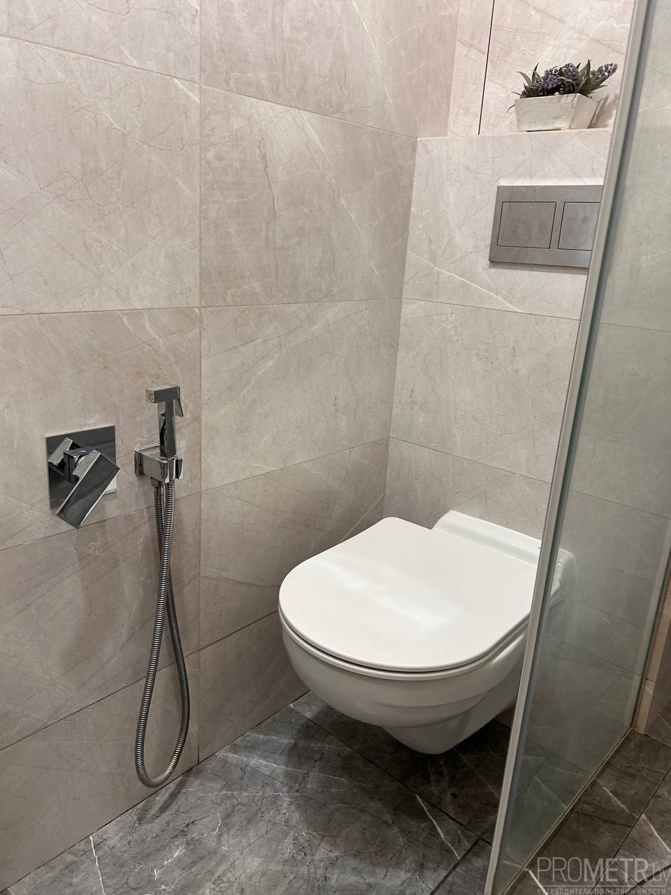 В квартире два санузла, один оборудован гигиеническим душем. Установлен кондиционер. Хорошая шумоизоляция: на этаже всего несколько квартир, соседи спокойные и семейные.<br />