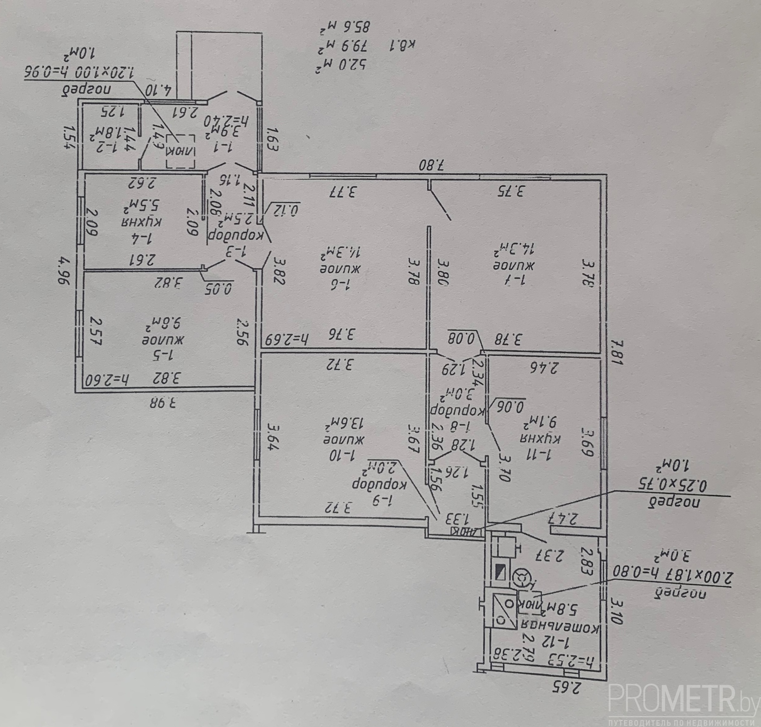 Площадь:85.60 / 52 / 9 м2