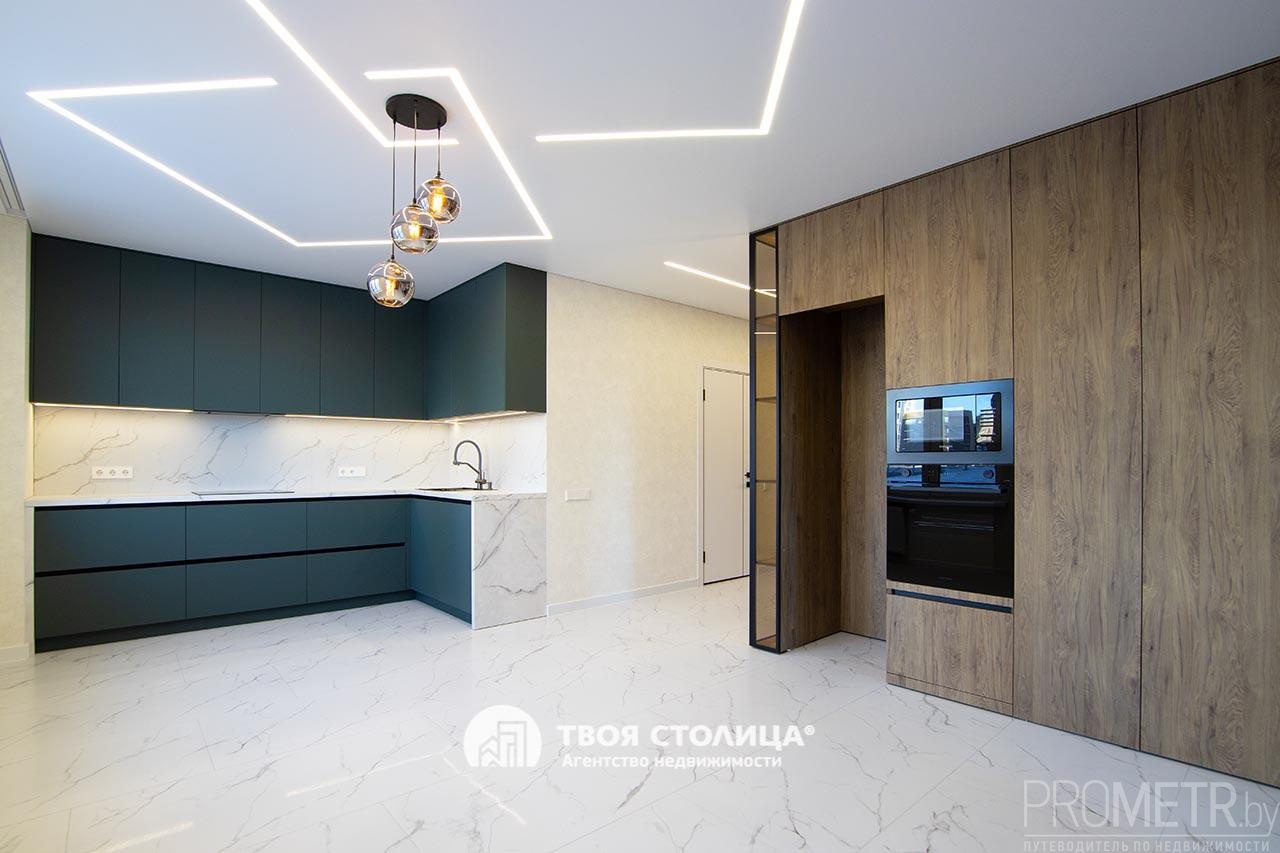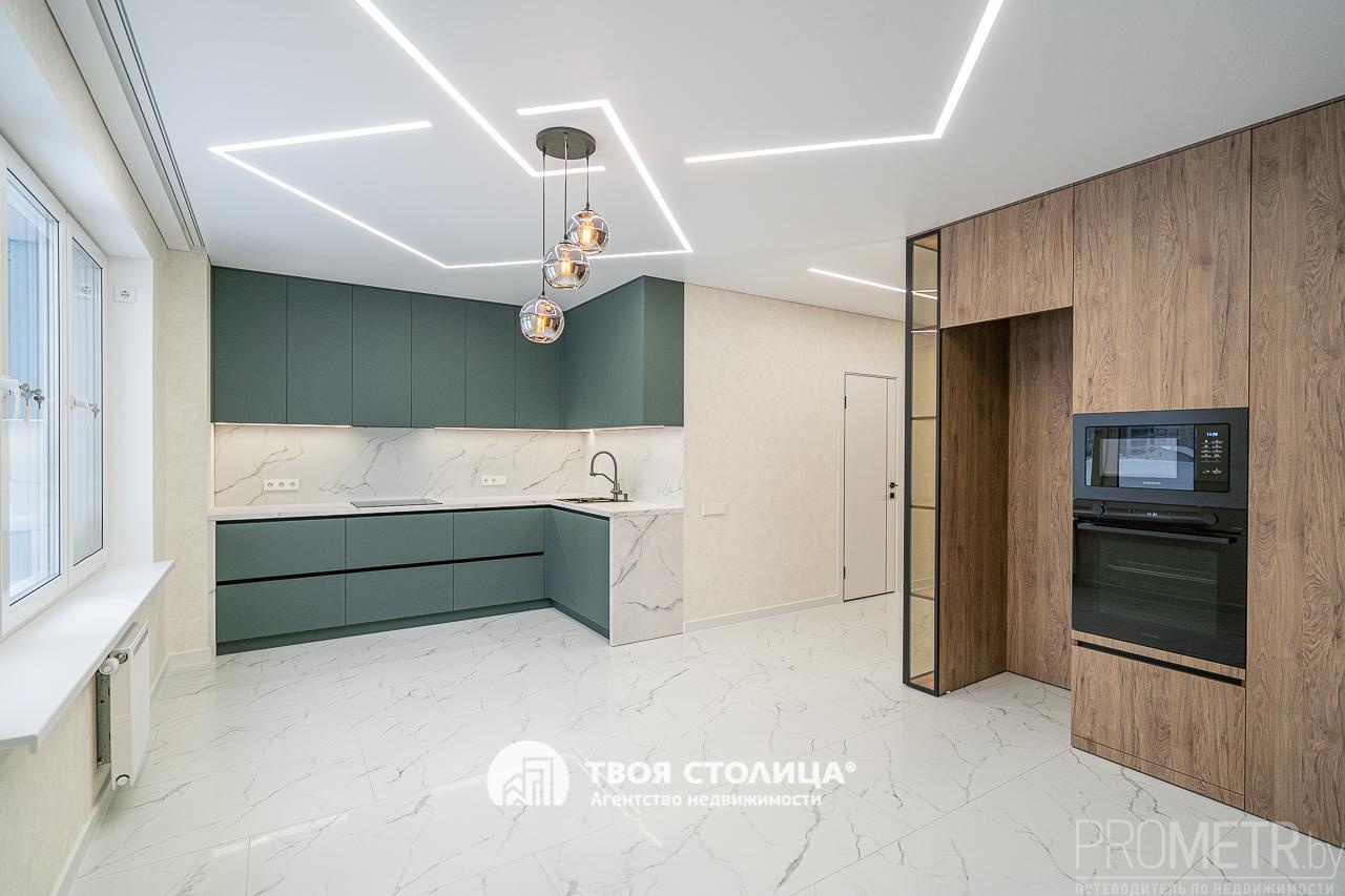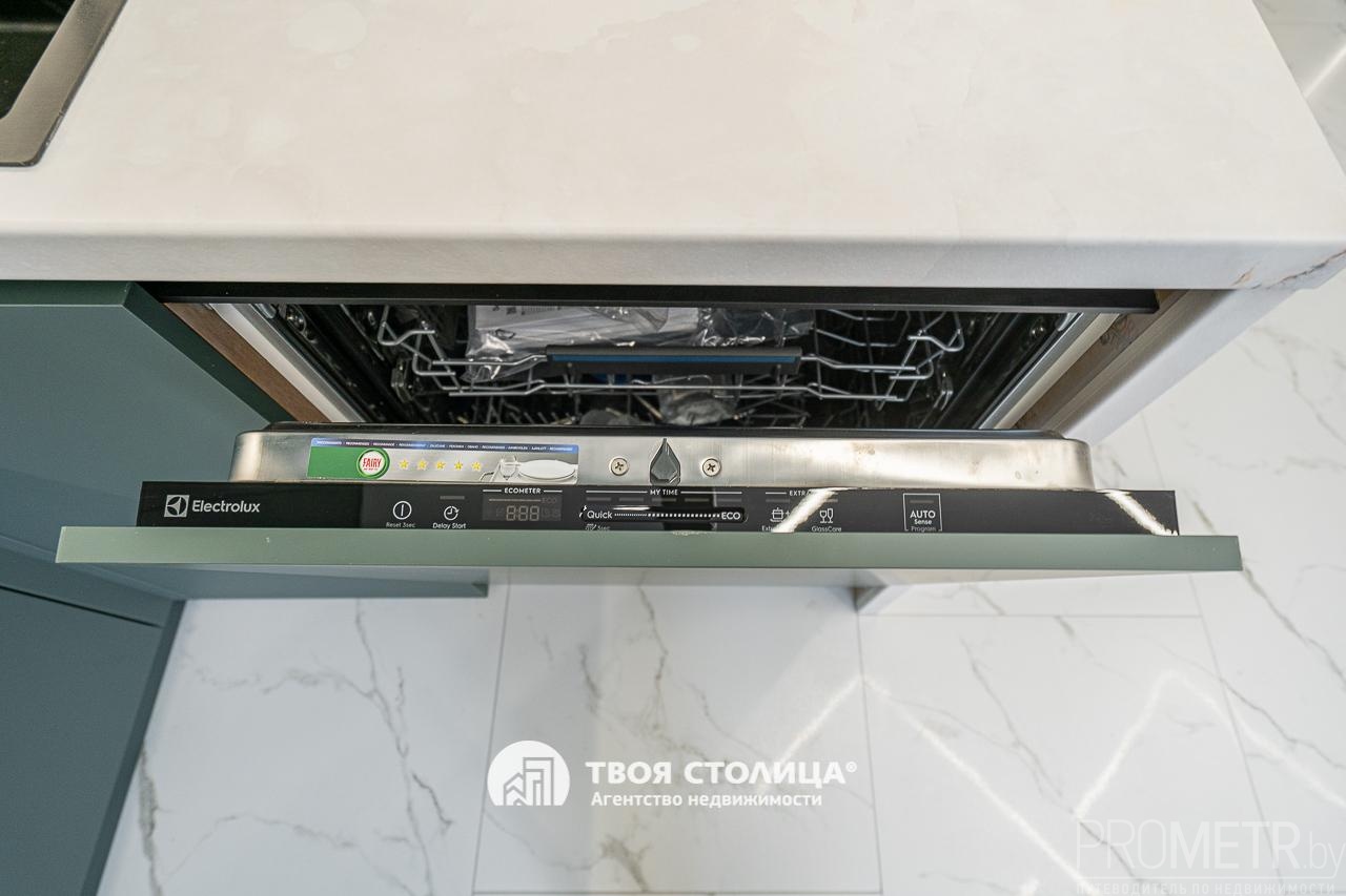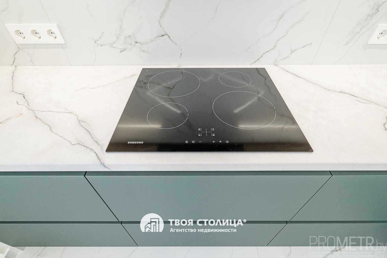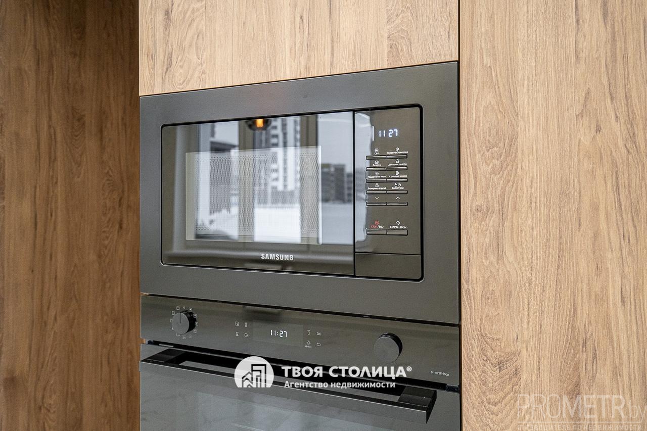 Встроенная кухня укомплектована современными и высококачественными бытовыми приборами, включая индукционную варочную плиту, вытяжку, посудомоечную машину, духовой шкаф, микроволновую печь - все это импортного производства. Микроклимат регулируется с помощью кондиционера.