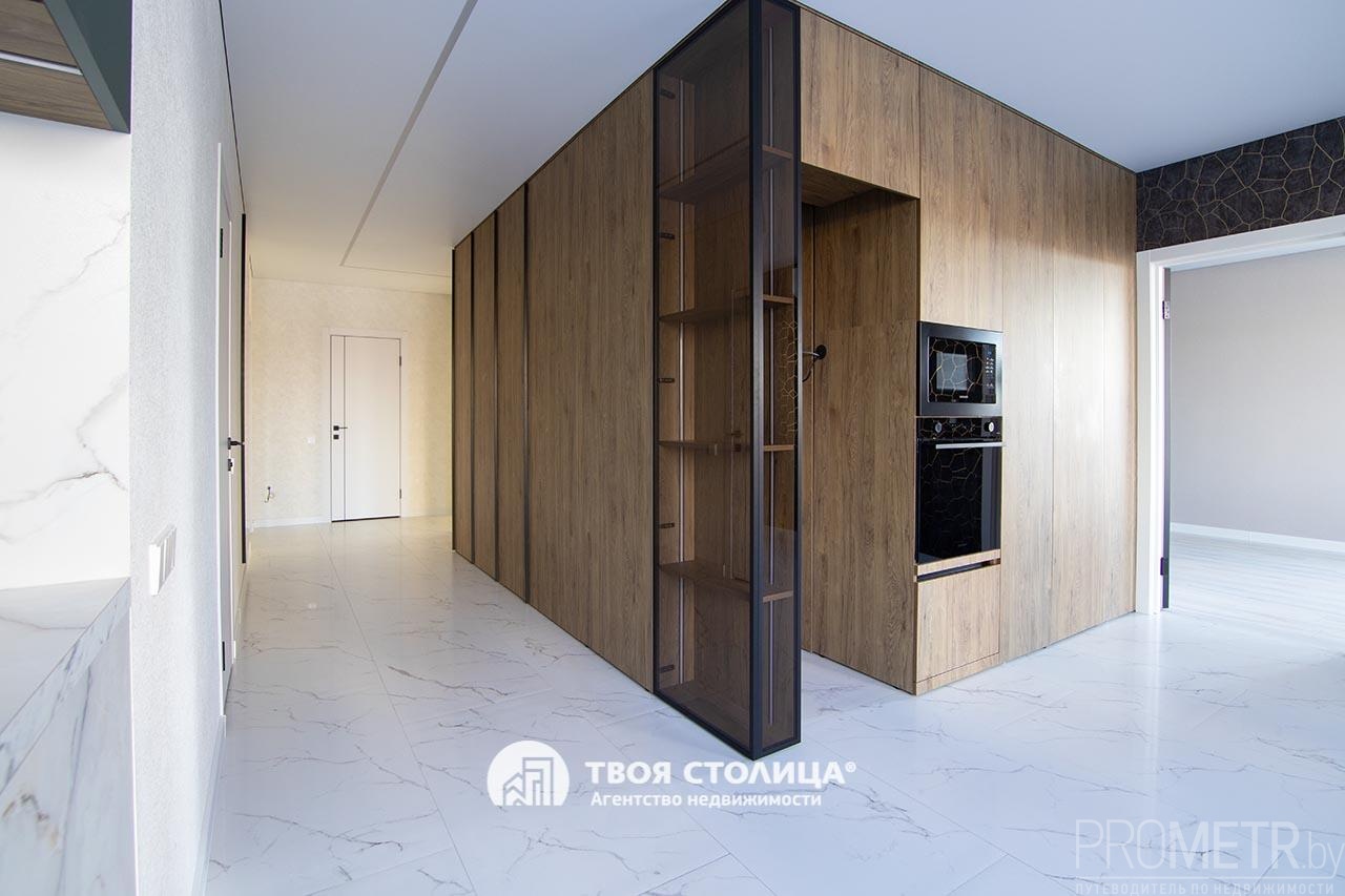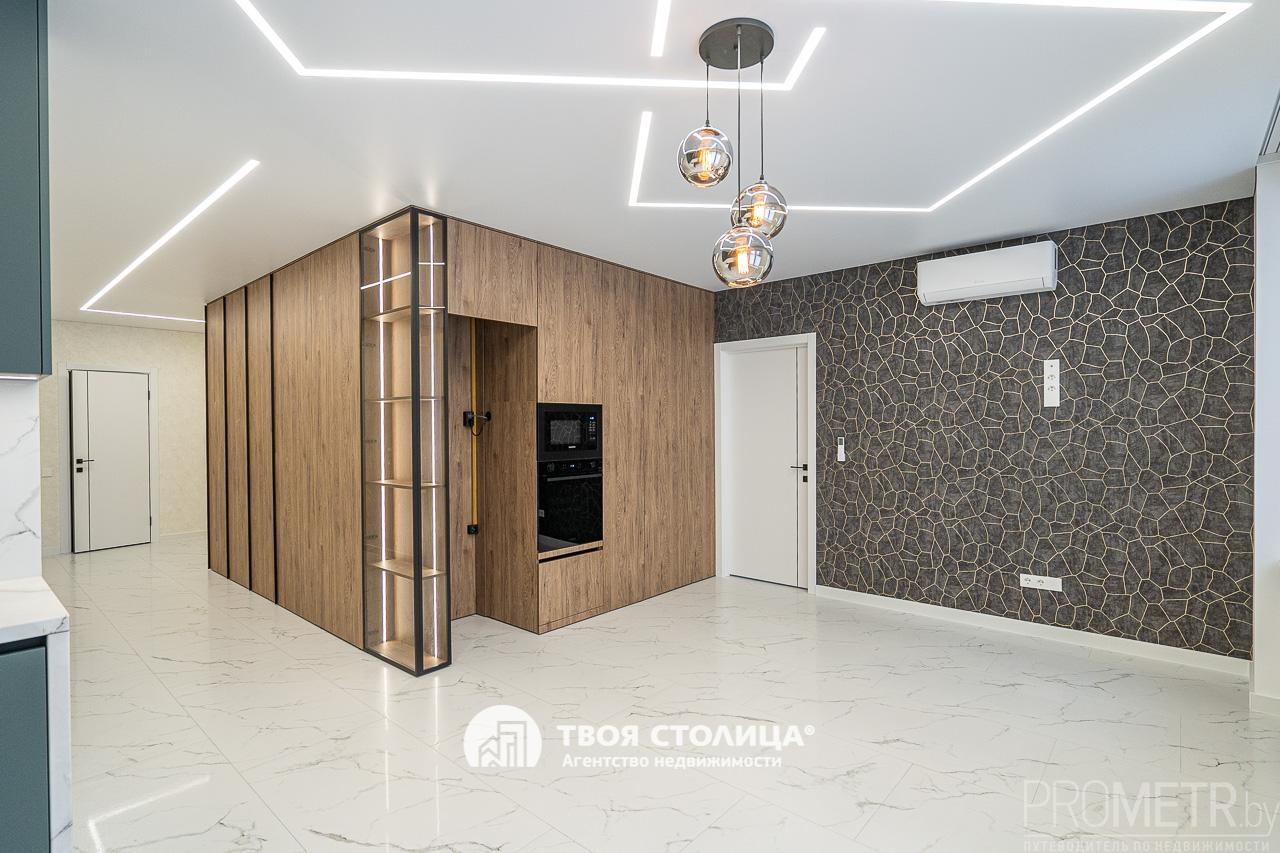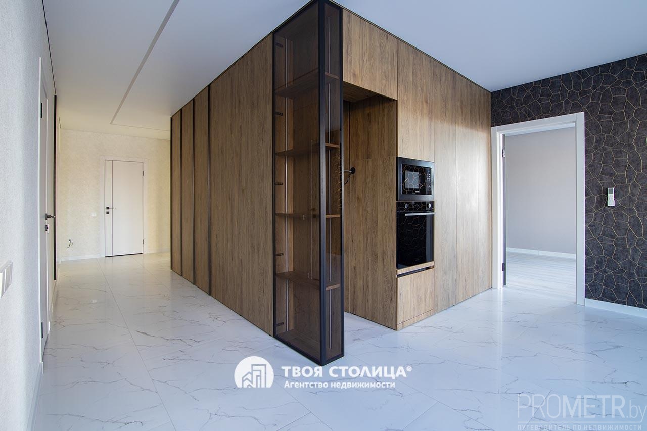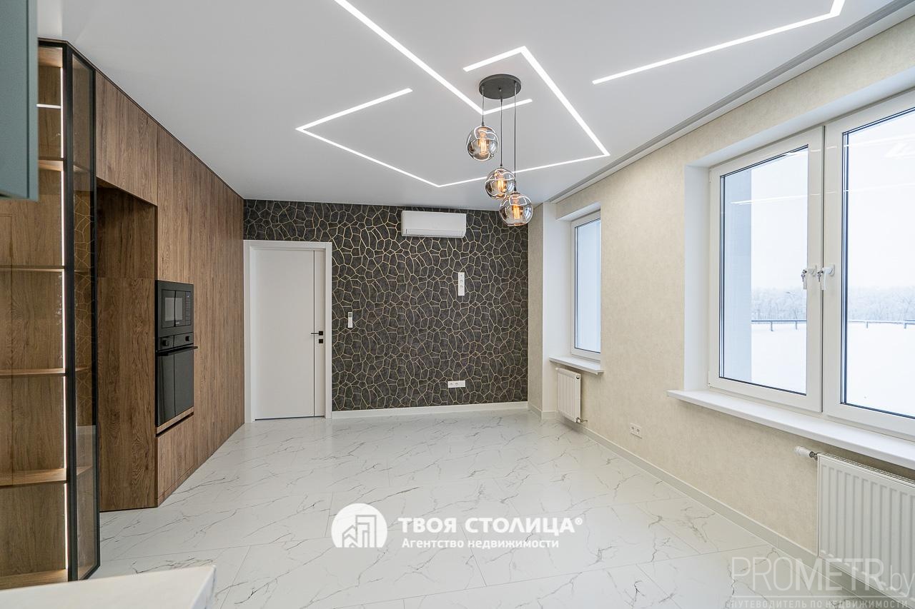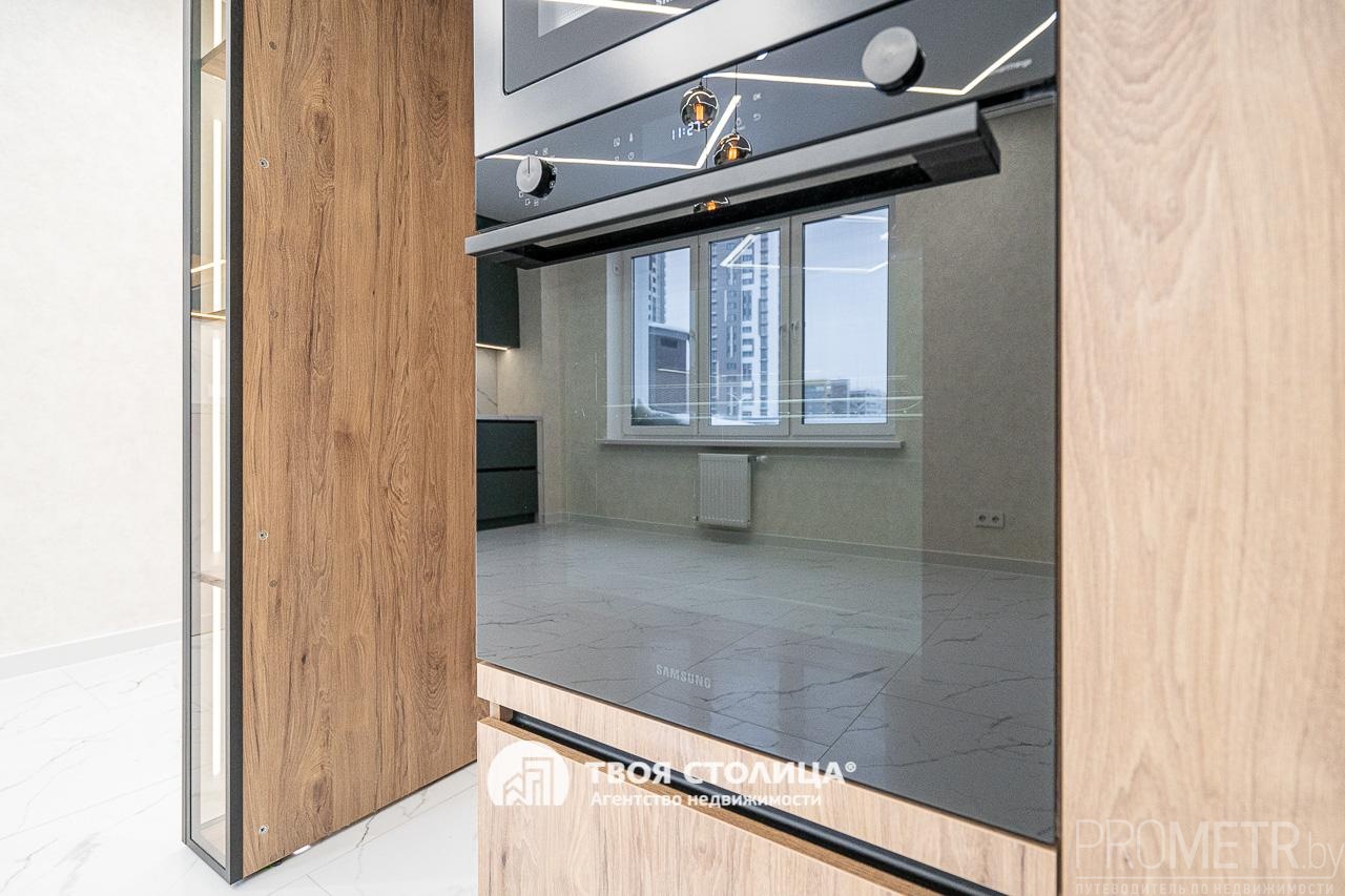 Встроенная кухня укомплектована современными и высококачественными бытовыми приборами, включая индукционную варочную плиту, вытяжку, посудомоечную машину, духовой шкаф, микроволновую печь - все это импортного производства. Микроклимат регулируется с помощью кондиционера.