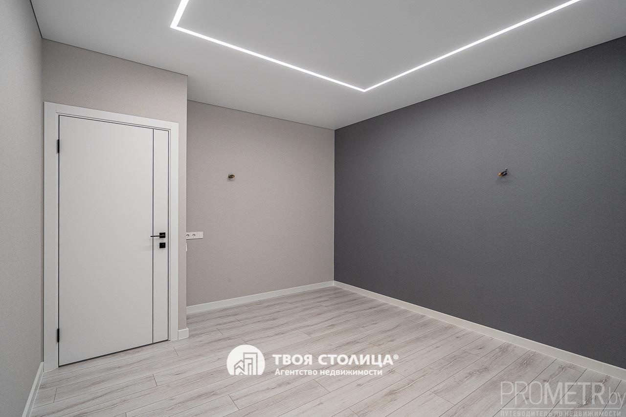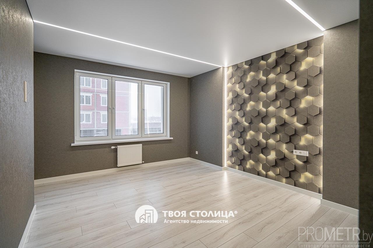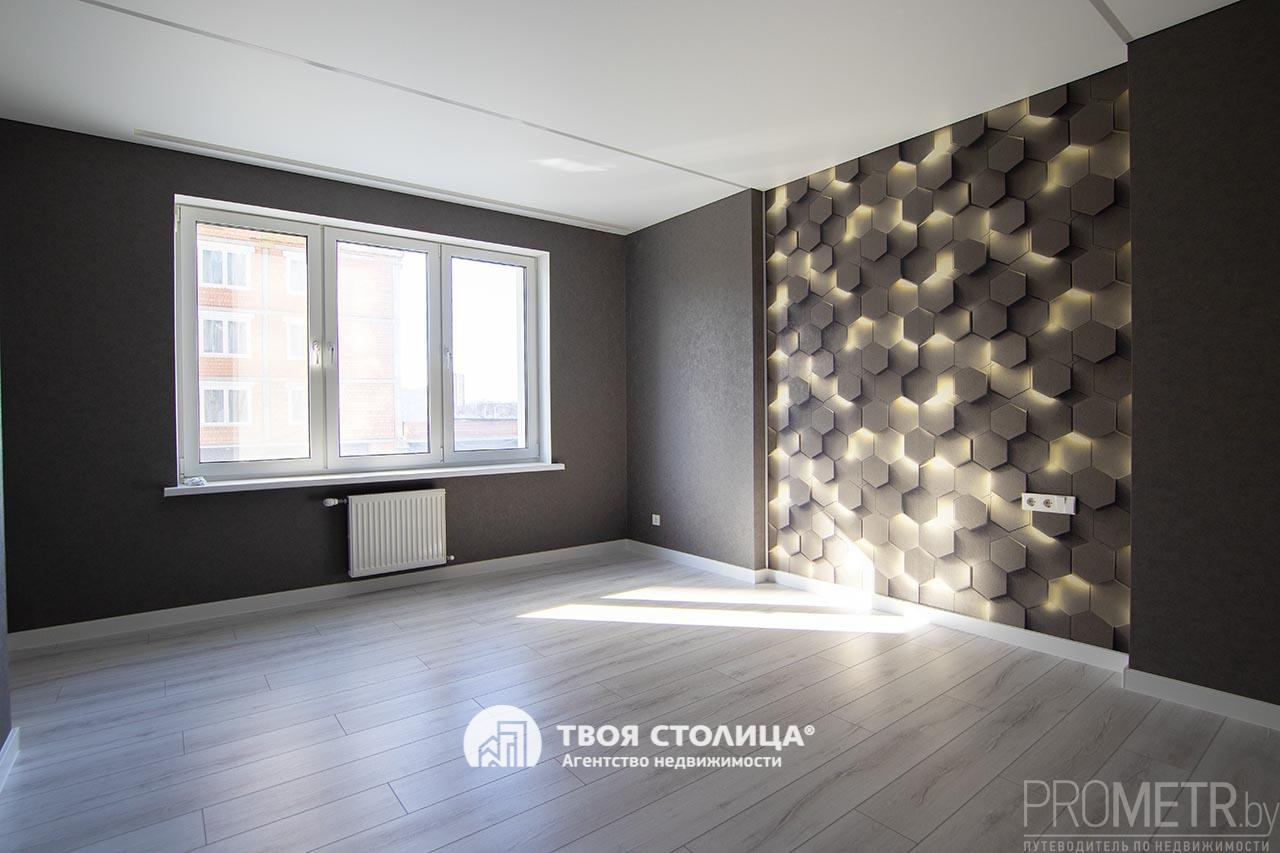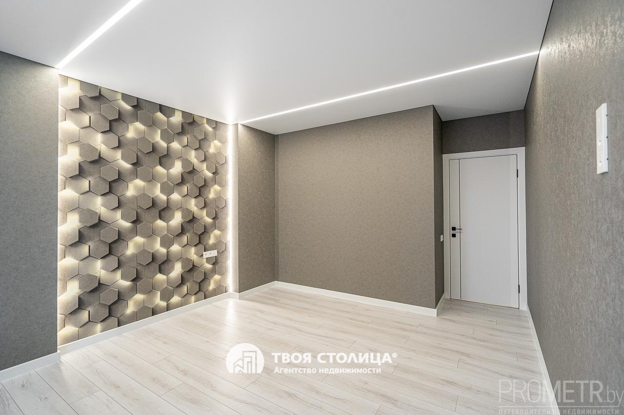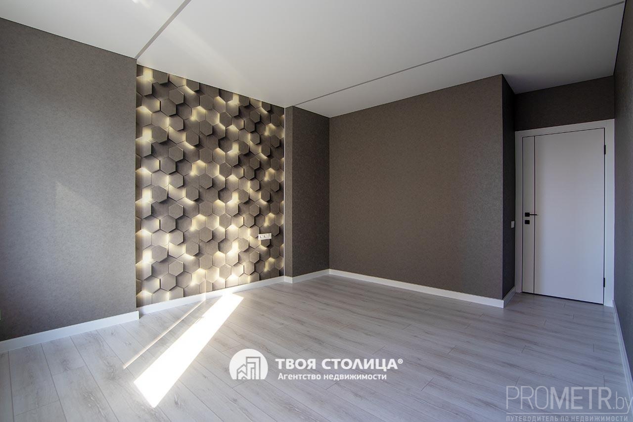 В квартире выполнен стильный и современный дизайнерский ремонт. Каждый элемент интерьера тщательно продуман. Высокие потолки 2.7 м. Натяжные потолки и светильники добавляют интерьеру функциональности, а также современный и стильный вид. Напольное покрытие - ламинат и плитка. На стенах обои, в одной из комнат акцентная стена с тактильной 3D-фактурой и мягкой подсветкой.