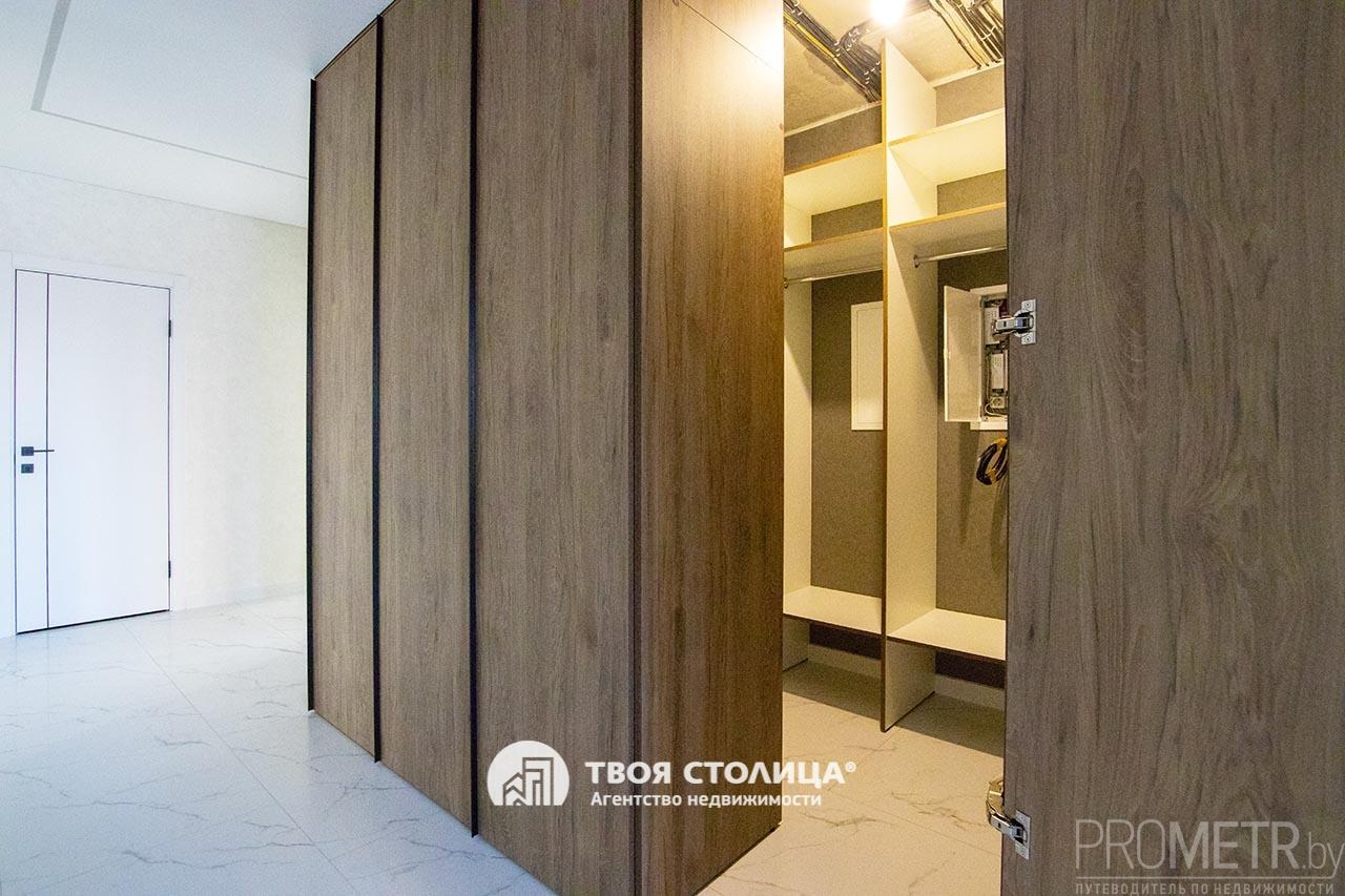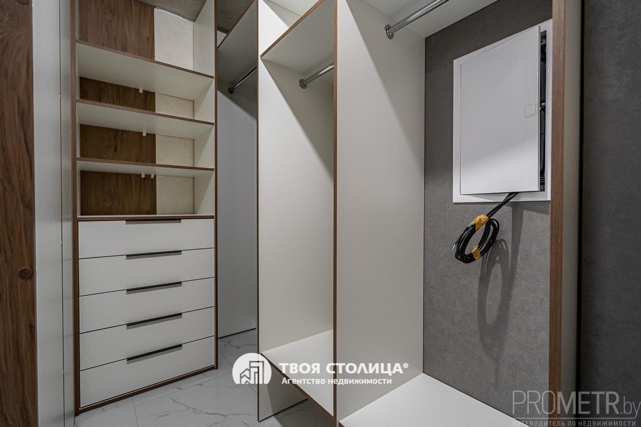 Две отдельные гардеробные комнаты полностью решают вопрос хранения, освобождая жилые зоны от визуального шума и громоздких шкафов.