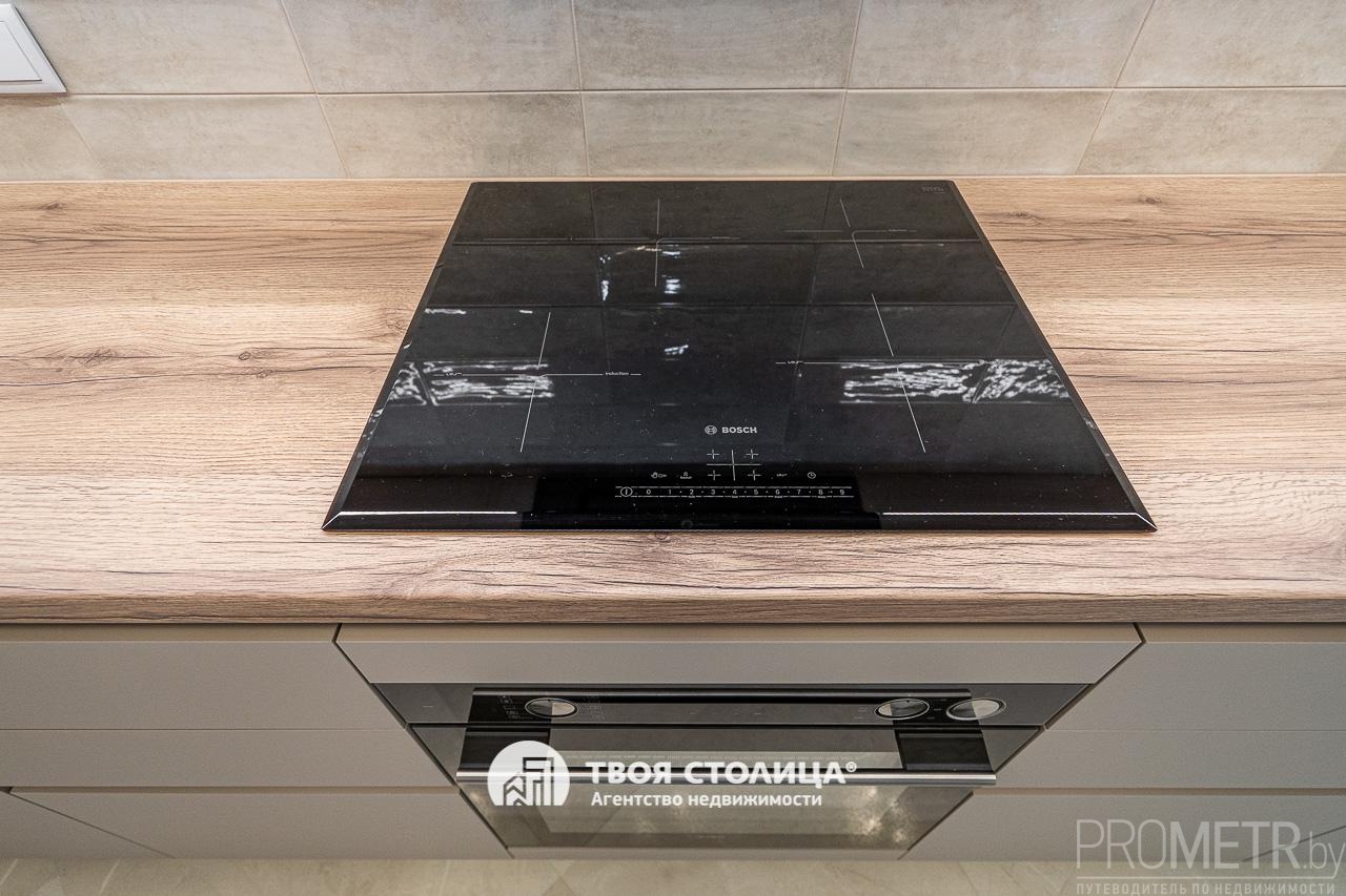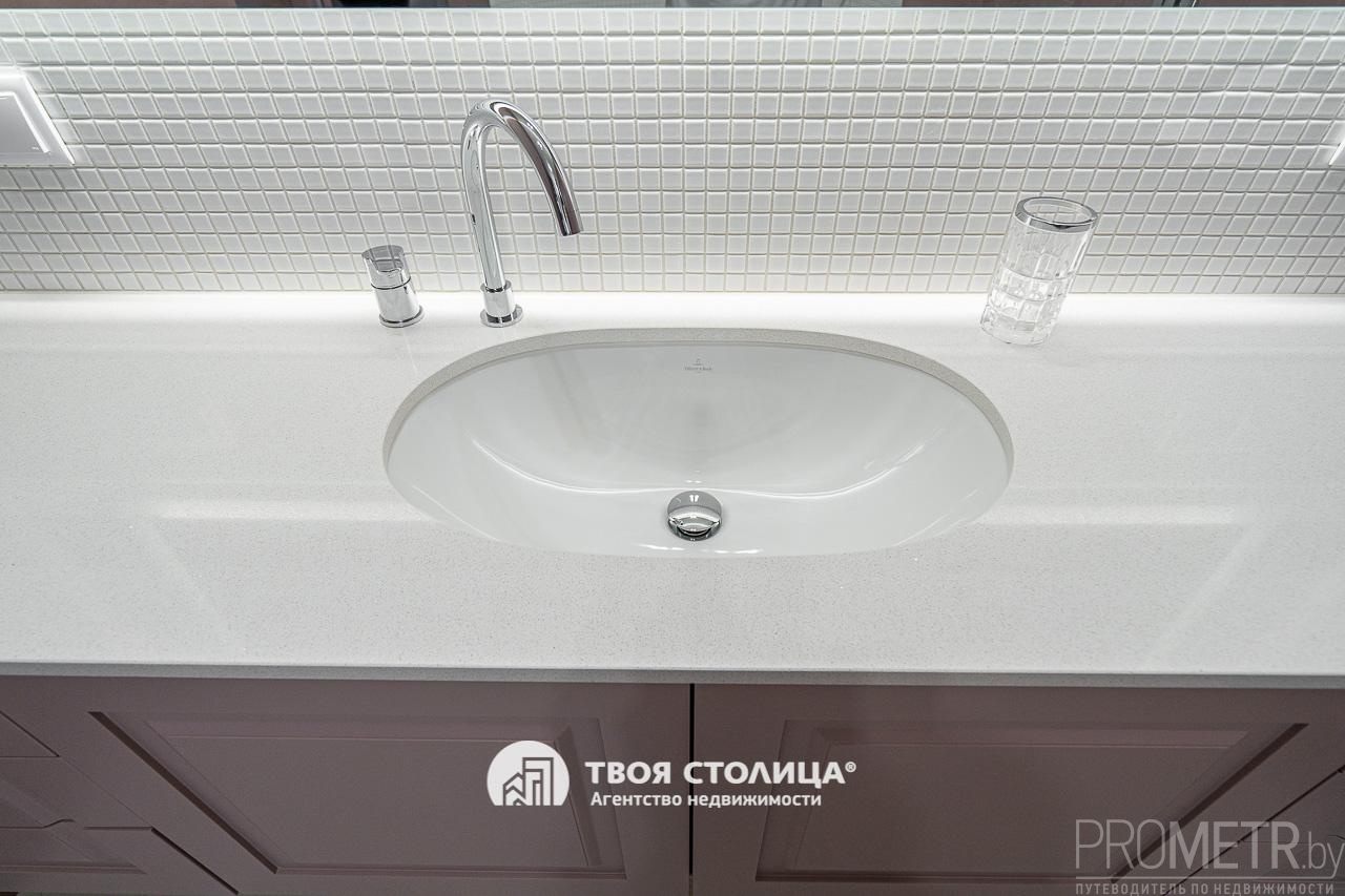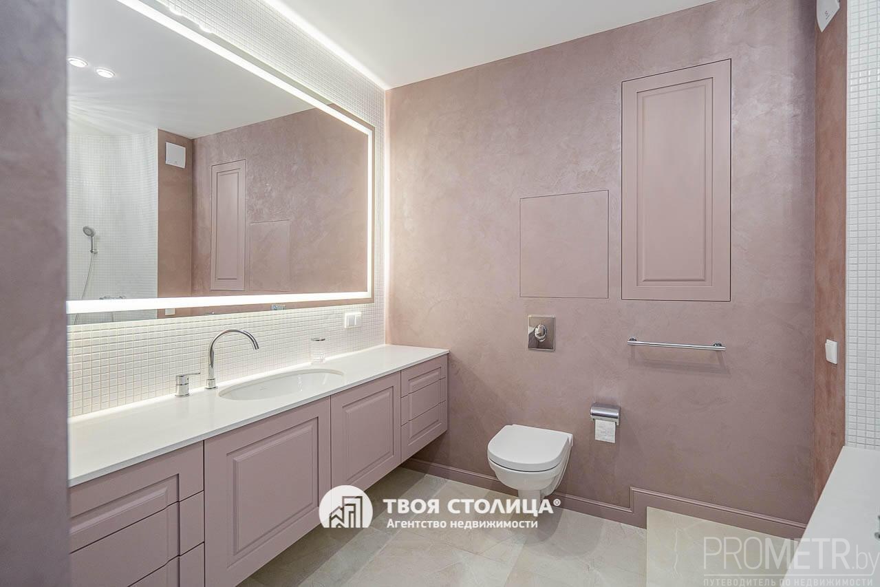 В квартире выполнен дизайнерский ремонт в 2025 году с применением качественных, дорогостоящих отделочных материалов. На стенах итальянская декоративная штукатурка и декоративная краска OTTOCENTO, на полу в жилых комнатах натуральный паркет под шелком, на кухне и в санузлах итальянский керамогранит с подогревом. Мебель и бытовая техника импортного производства, новая, на гарантии. Вся сантехника и санфаянс премиальных брендов (Grohe, Villeroy&Boch).