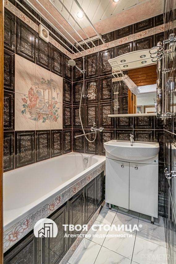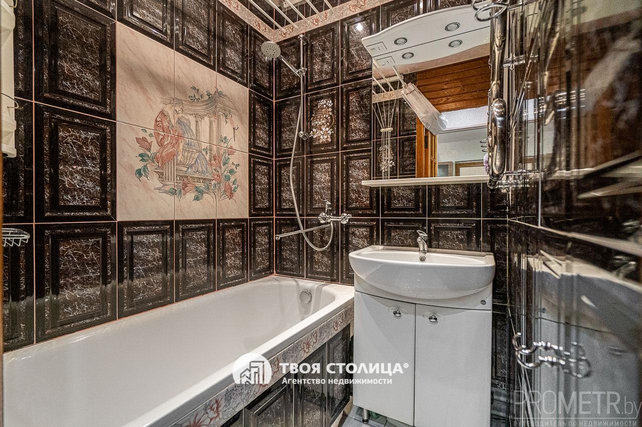 На полу во всей квартире уложена плитка импортного пр-ва. Потолки – натяжные с точечным светом и подвесными светильниками.