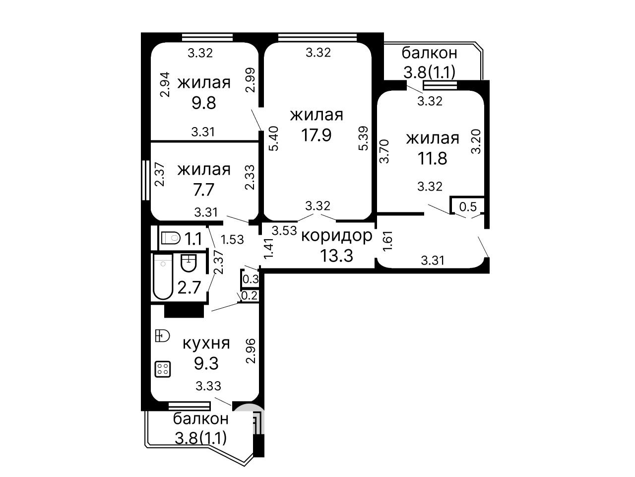 Квартира с удачным планировочным решением: просторные кухня и коридор, раздельный санузел, два балкона. Окна выходят на разные стороны дома, благодаря чему в помещениях всегда много естественного света и ощущение простора.